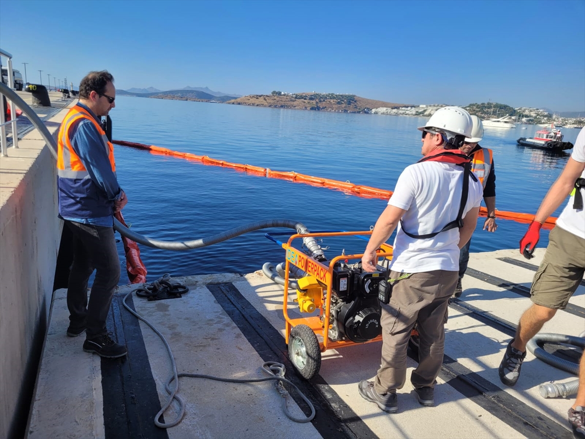 MUĞLA (AA) – Bodrum Cruise Port'ta deniz kirliliğine müdahale tatbikatı, ilgili kurumların katılımıyla gerçekleştirildi.