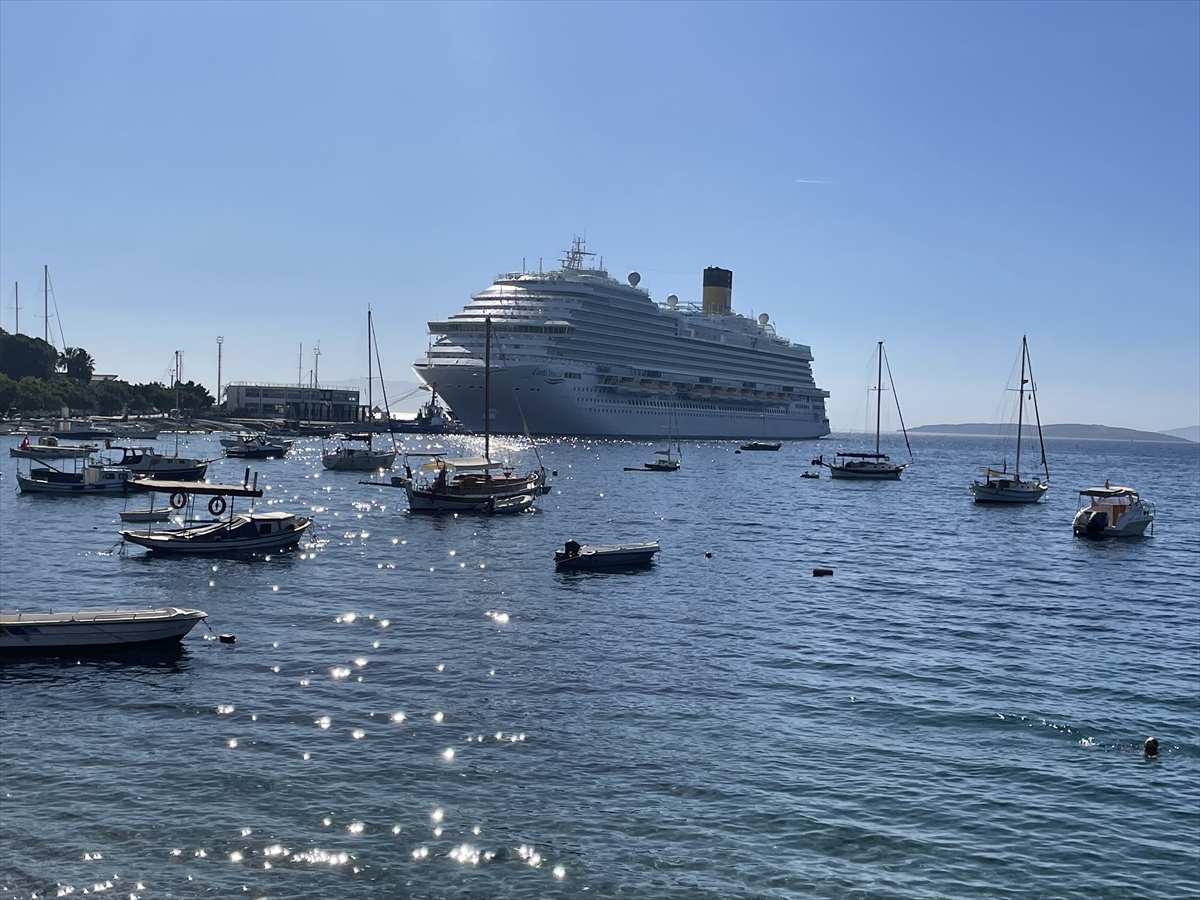 İzmir Limanı'ndan gelen ve Bodrum Cruise Port İskelesi'ne yanaştırılan 323 metrelik kruvaziyerde, ağırlıklı Fransız, Alman ve İtalyan 1821 yolcu ve 983 personel bulunuyor.