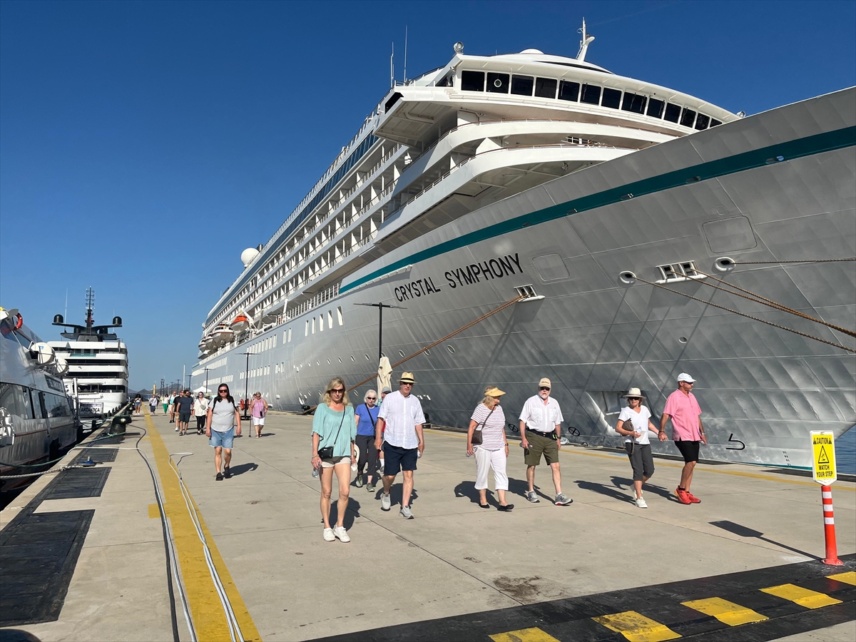 Rodos Limanı'ndan gelen 238 metre uzunluğundaki "Crystal Symphony" gemisinde çoğu ABD'li 445 yolcu ile 492 personel bulunuyor. Gemiden inen yolcular pasaport işlemlerinin ardından turistik ilçeyi gezdi.