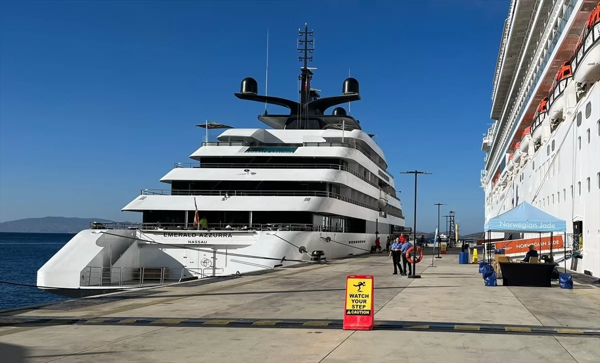 Bahamalar bayraklı "Emerald Azzurra" isimli 110 metre uzunluğundaki lüks yat da Kuşadası'ndan gelerek limana demirledi.