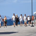 Gemiden inen turistler, gümrük işlemlerinin ardından limandan ayrıldı.