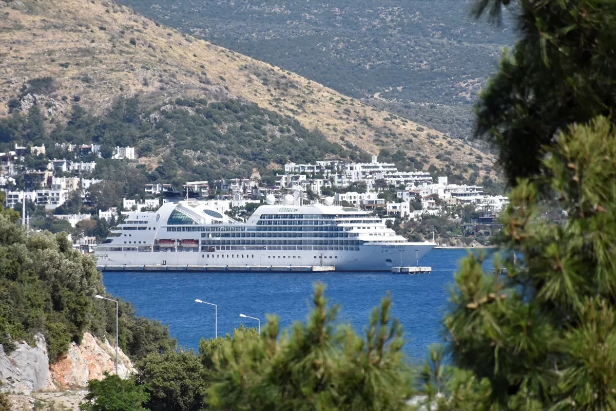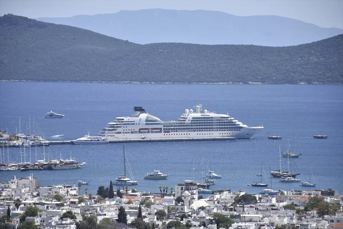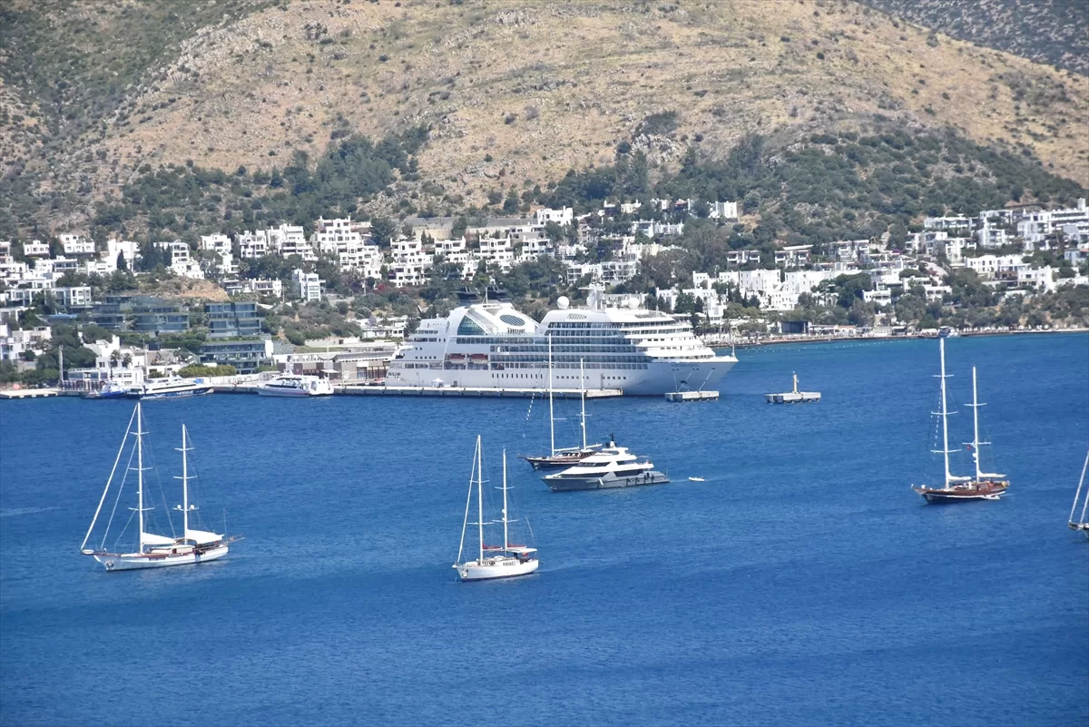 Dikili Limanı'nın ardından ilçeyi ziyaret eden 198 metre uzunluğundaki gemi, Bodrum Cruise Port Limanı'na yanaştırıldı.