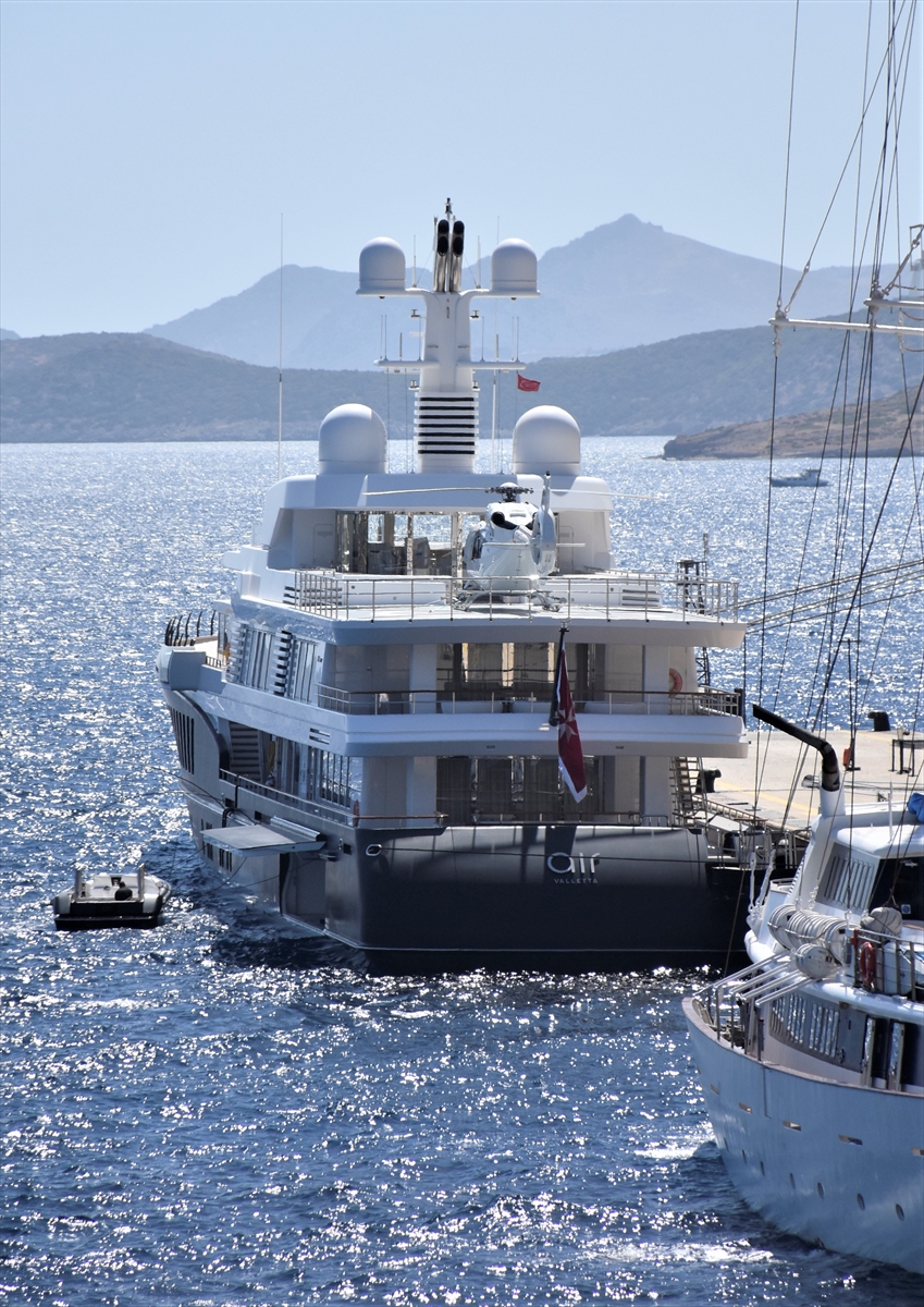 Yolcu gemilerinin yanaştırıldığı iskelede, üzerinde helikopter bulunan 81 metre uzunluğundaki "Air" isimli motor yat da dikkati çekti.