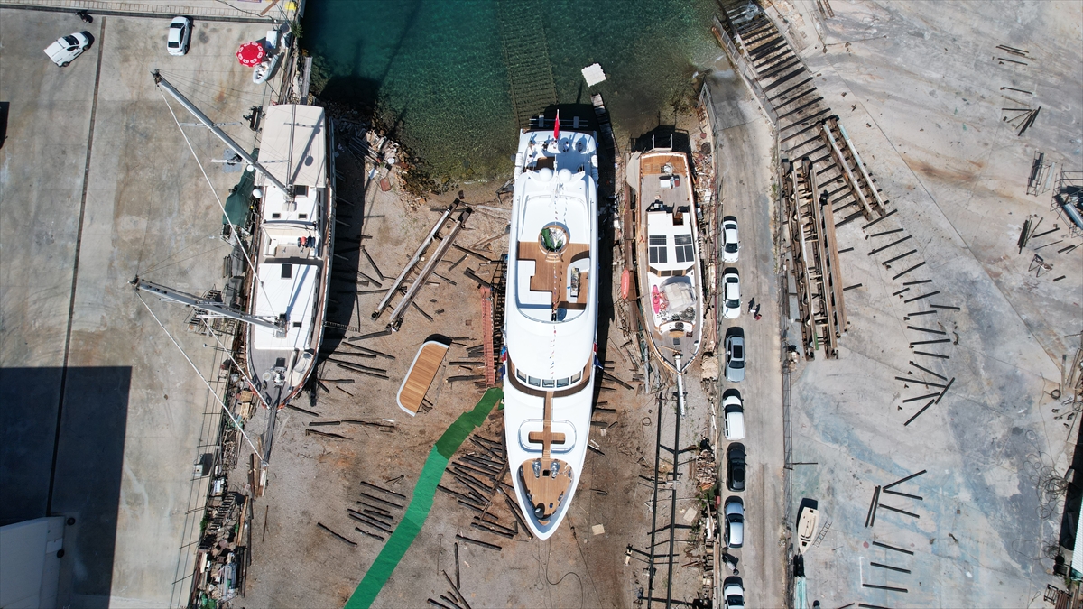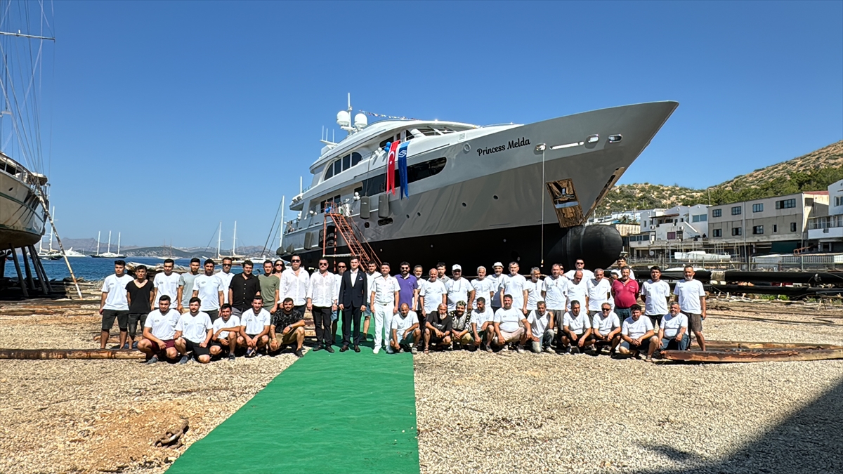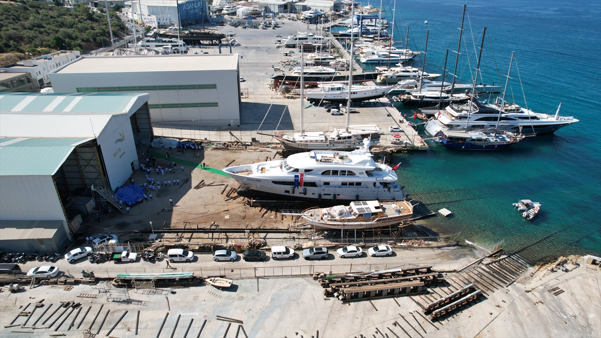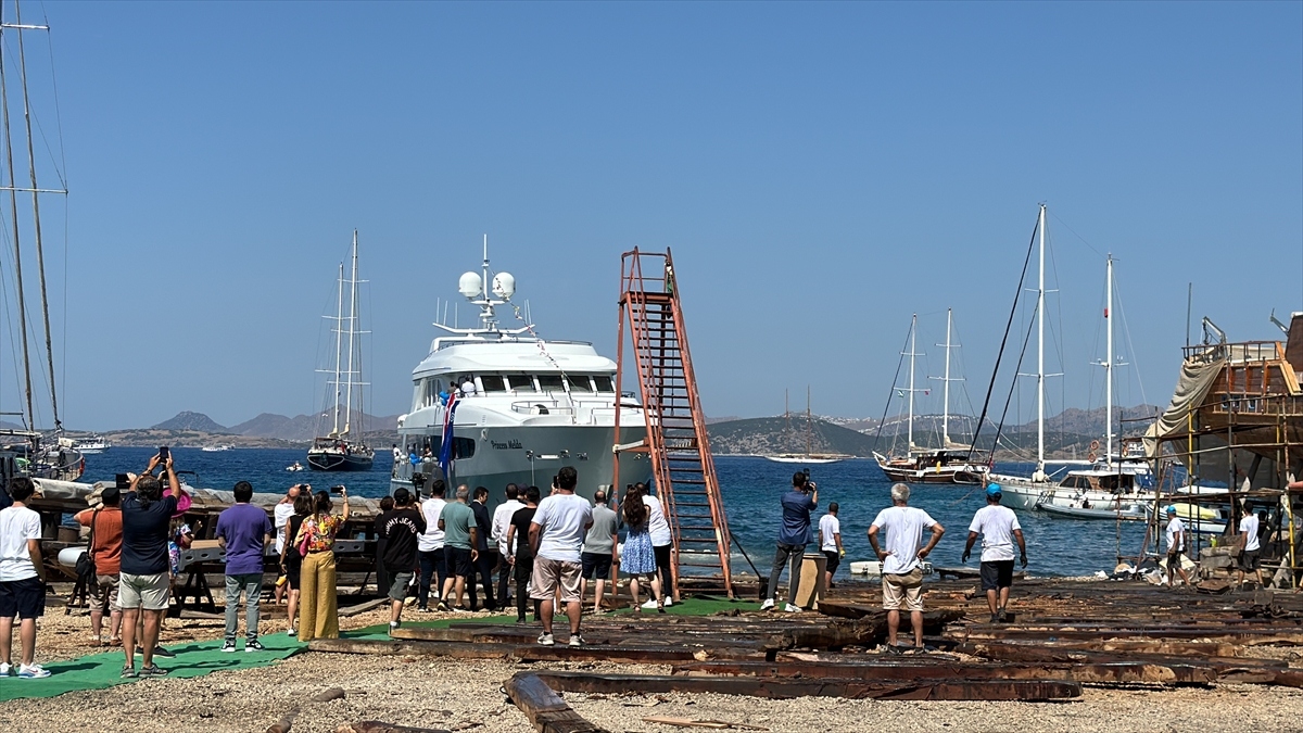 MUĞLA (AA) – Muğla'nın Bodrum ilçesindeki tersanede yapımı tamamlanan 42 metrelik "Prenses Melda" isimli charter lüks yat törenle denize indirildi.