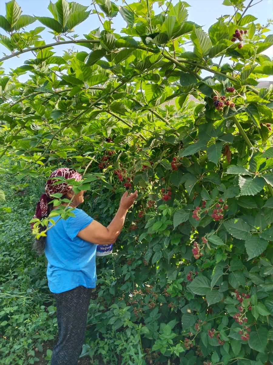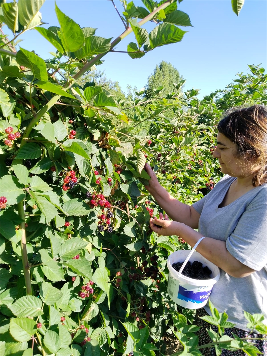 Köyünde 3 yıl önce üretime başlayan Ateş, tarım arazisini böğürtlen bahçesine dönüştürdü. Yılda 40 ton meyve alan Ateş, şu sıralar böğürtlen hasadı yapıyor.