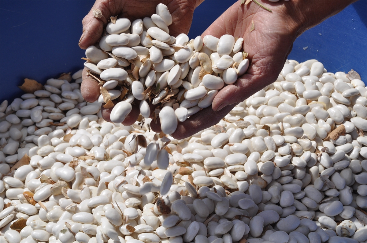 Üreticilerden Haşim Özdemir de yaklaşık 8 dönüme ektikleri fasulyeden 1 ton ürün elde edeceklerini belirterek, "Kabuğu sertleşiyor, güneşe seriyoruz, açılınca vantilatörle rüzgar atarak temizliyoruz." diye konuştu.