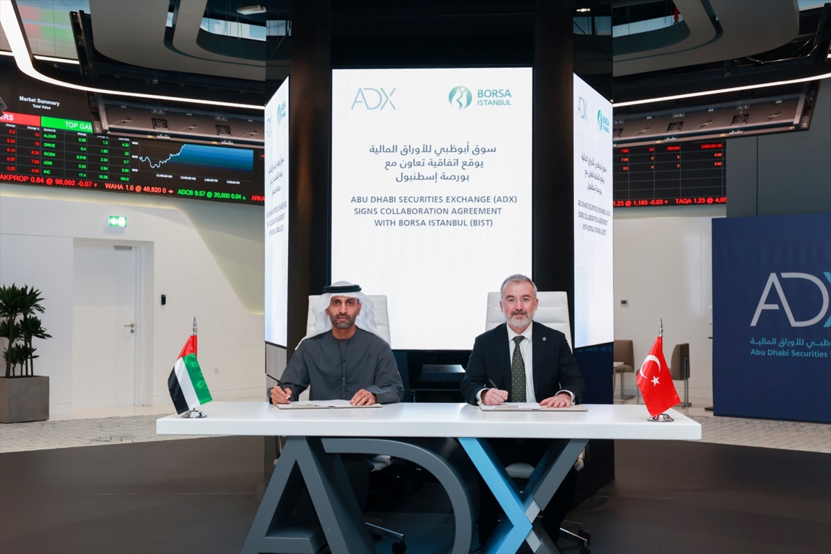 Borsa İstanbul Genel Müdürü Korkmaz Ergun ile Abu Dabi Borsası Genel Müdürü ve Üst Yöneticisi (CEO) Saeed Al Dhaheri tarafından imzalanan ticari anlaşma kapsamında Borsa İstanbul, Abu Dabi Borsası'na bilgi teknolojileri alanında uygulama ve danışmanlık desteği verecek.