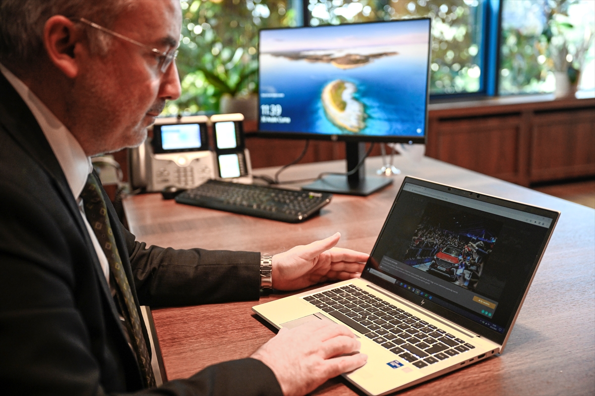 AA muhabirleri ile foto muhabirlerinin yurt içi ve yurt dışında çektiği fotoğrafları inceleyen Ergun, haber kategorisinde Emrah Yorulmaz'ın "TOGG'un ilk yolculuğu" karesini seçti.
