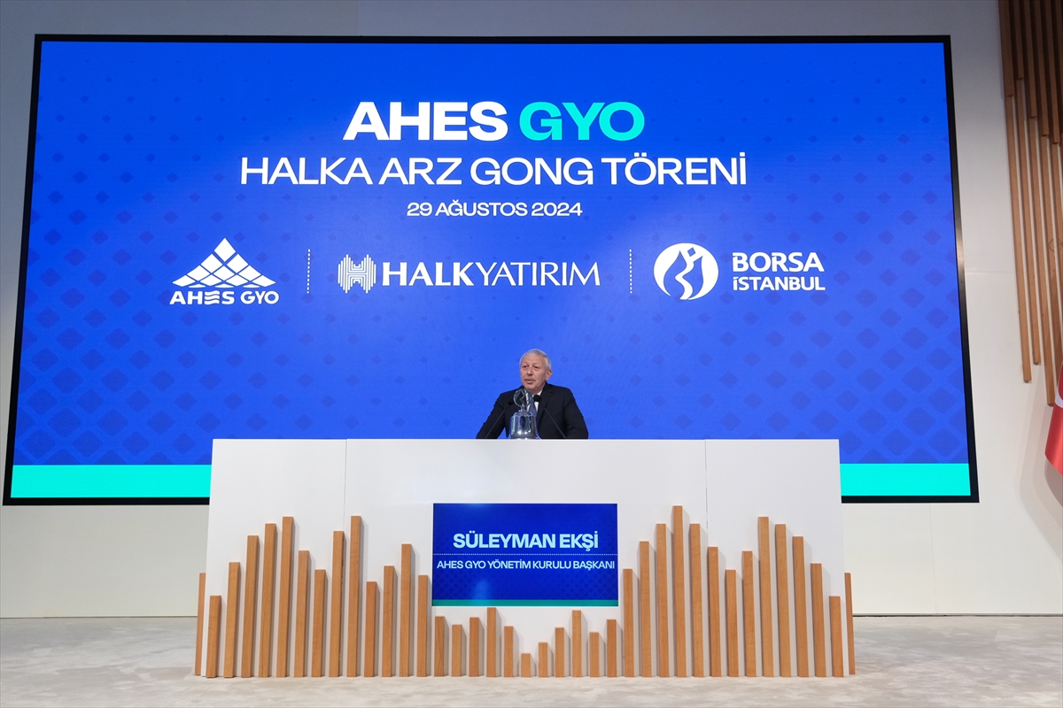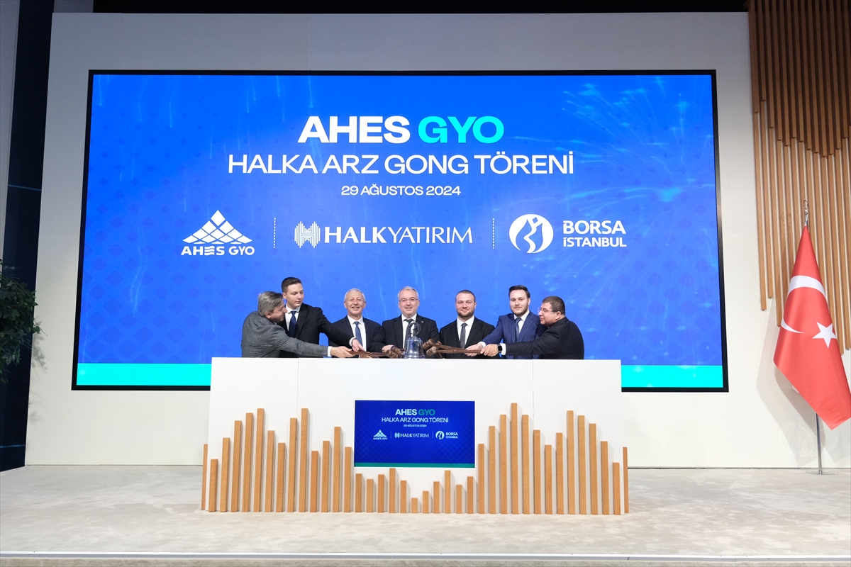 Borsa İstanbul'da düzenlenen AHES GYO AŞ'nin gong töreni, Borsa İstanbul AŞ Genel Müdürü Korkmaz Ergun, AHES GYO Yönetim Kurulu Başkanı Süleyman Ekşi, AHES GYO Yönetim Kurulu Başkan Vekili Mücahid Hamza Ekşi, AHES GYO Yönetim Kurulu Üyesi Ebubekir Ekşi, Halk Yatırım Genel Müdürü Bülent Sezgin ve davetlilerin katılımıyla gerçekleştirildi.