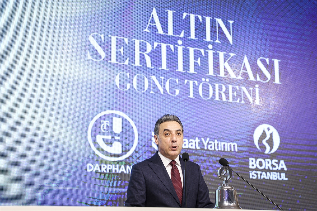 İSTANBUL (AA) – Hazine ve Maliye Bakanlığı Darphane ve Damga Matbaası Genel Müdürlüğü (Darphane) tarafından ihraç edilen Darphane Altın Sertifikası, Borsa İstanbul'da gerçekleştirilen gong töreniyle ALTIN.S1 kodu ile Emtia Pazarı'nda işlem görmeye başladı.