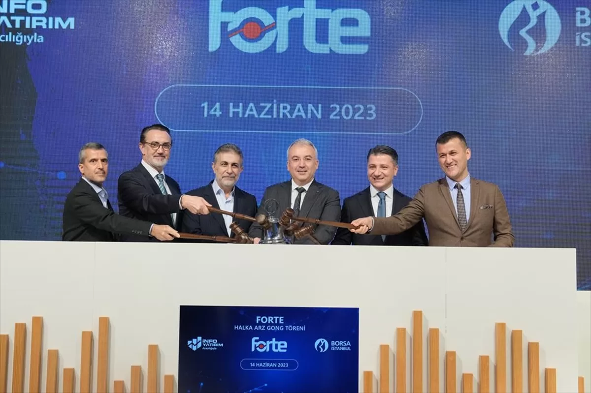 Forte Bilgi İletişim Teknolojileri, halka arzın yatırımcıların yoğun ilgisiyle tamamlanmasının ardından bugün gerçekleştirilen gong töreni sonrası Borsa İstanbul'da işlem görmeye başladı.