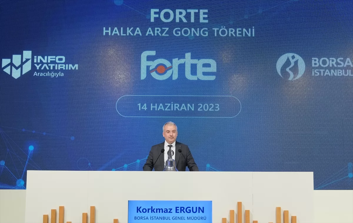 Borsa İstanbul Genel Müdürü Korkmaz Ergun, Forte Bilgi İletişim Teknolojilerinin bugün işlem görmeye başlaması nedeniyle Borsa İstanbul'da düzenlenen halka arz gong töreninde yaptığı konuşmada, 6 Şubat depreminde hayatını kaybeden vatandaşları rahmetle anarken, depremden etkilenen vatandaşların ailelerine ve yakınlarına sabırlar, yaralılara acil şifalar diledi.