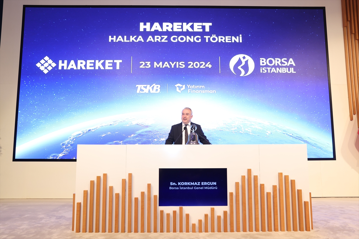 Hareket Proje Taşımacılığı Yük Mühendisliği AŞ'nin borsada işlem görmeye başlaması dolayısıyla düzenlenen gong töreninde konuşan Borsa İstanbul Genel Müdürü Korkmaz Ergun, uzun yıllara dayanan köklü bir geçmişi bulunan şirketin yenilikçi bir firma olduğunu söyledi.