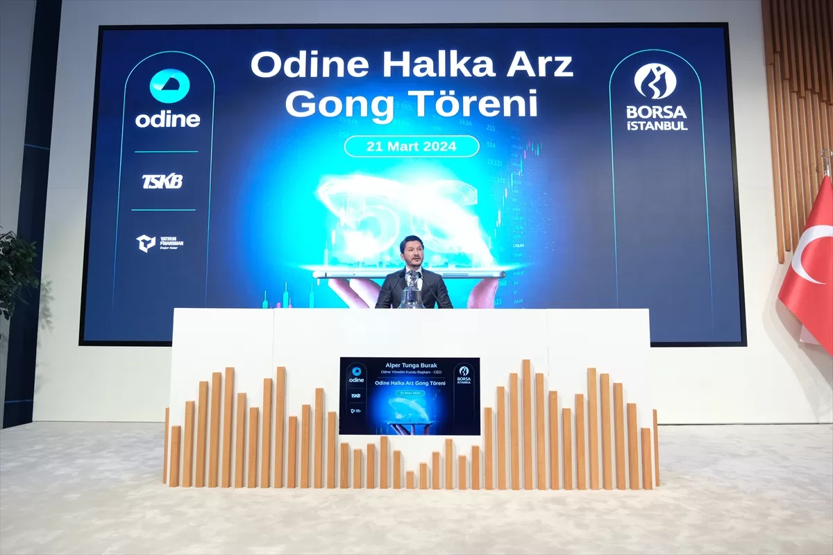 Odine'in borsada işlem görmeye başlaması nedeniyle düzenlenen gong törenine, Borsa İstanbul AŞ Genel Müdürü Korkmaz Ergun, Odine Yönetim Kurulu Başkanı ve Üst Yöneticisi (CEO) Alper Tunga Burak, Odine Yönetim Kurulu Başkan Yardımcısı Fırat Kerim Ersoy, Yönetim Kurulu üyeleri Tarkan Alagöz, Ali Yöney ile TSKB Genel Müdür Yardımcısı Poyraz Koğacıoğlu ve Yatırım Finansman Genel Müdürü Eralp Arslankurt katıldı.
