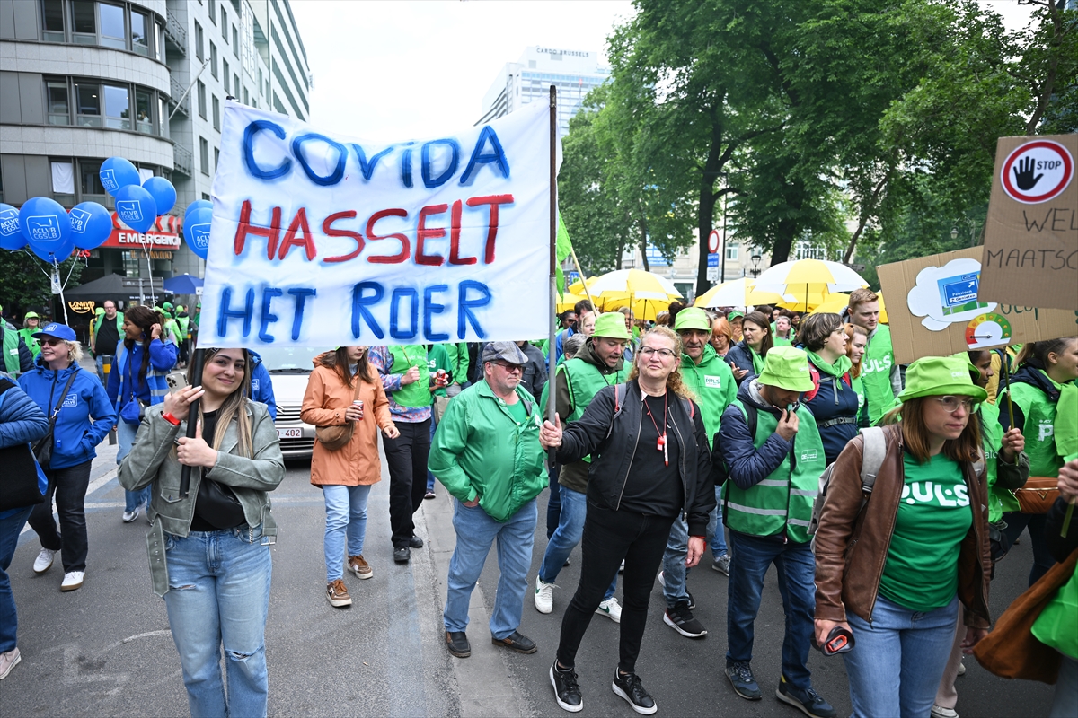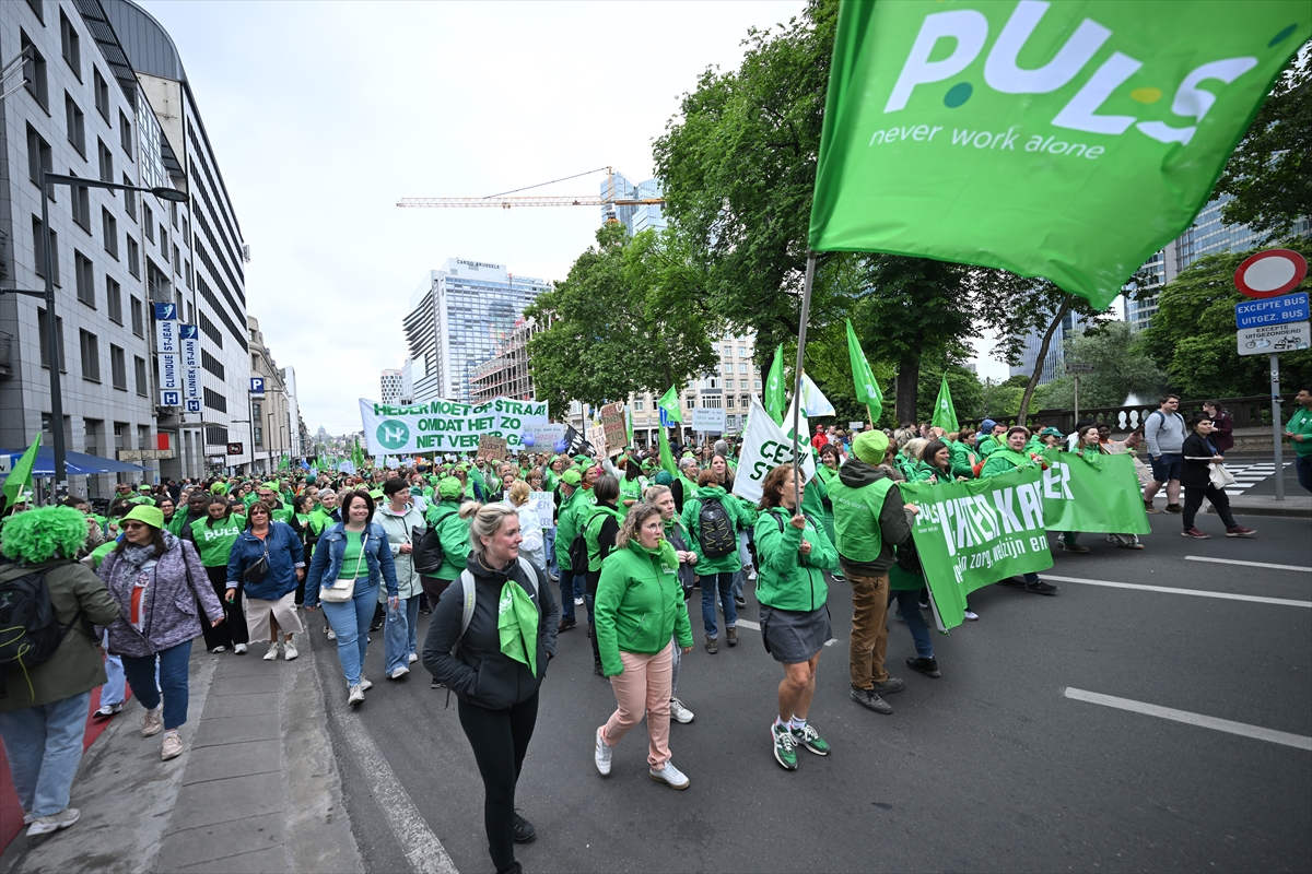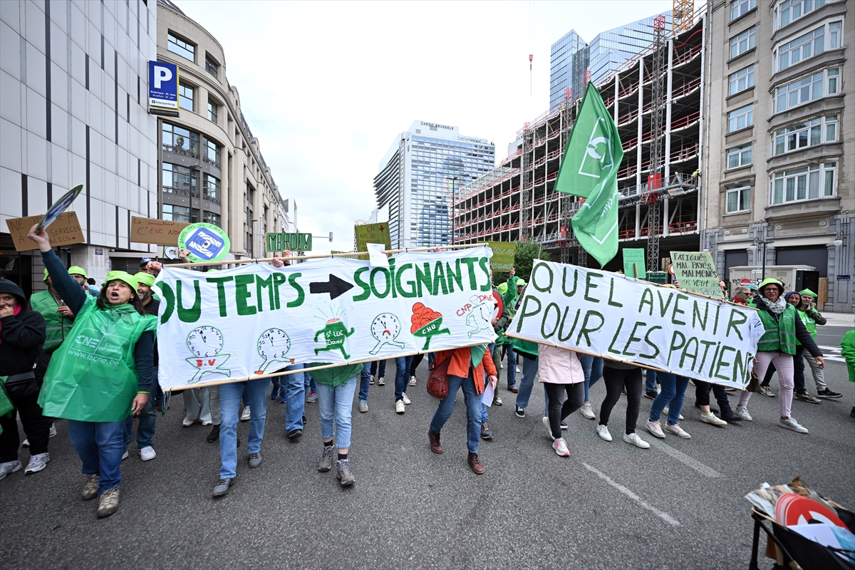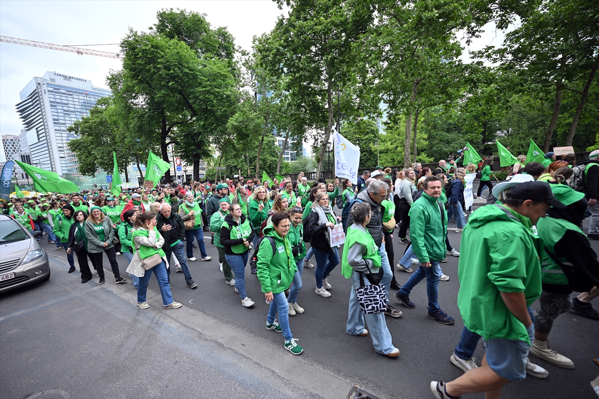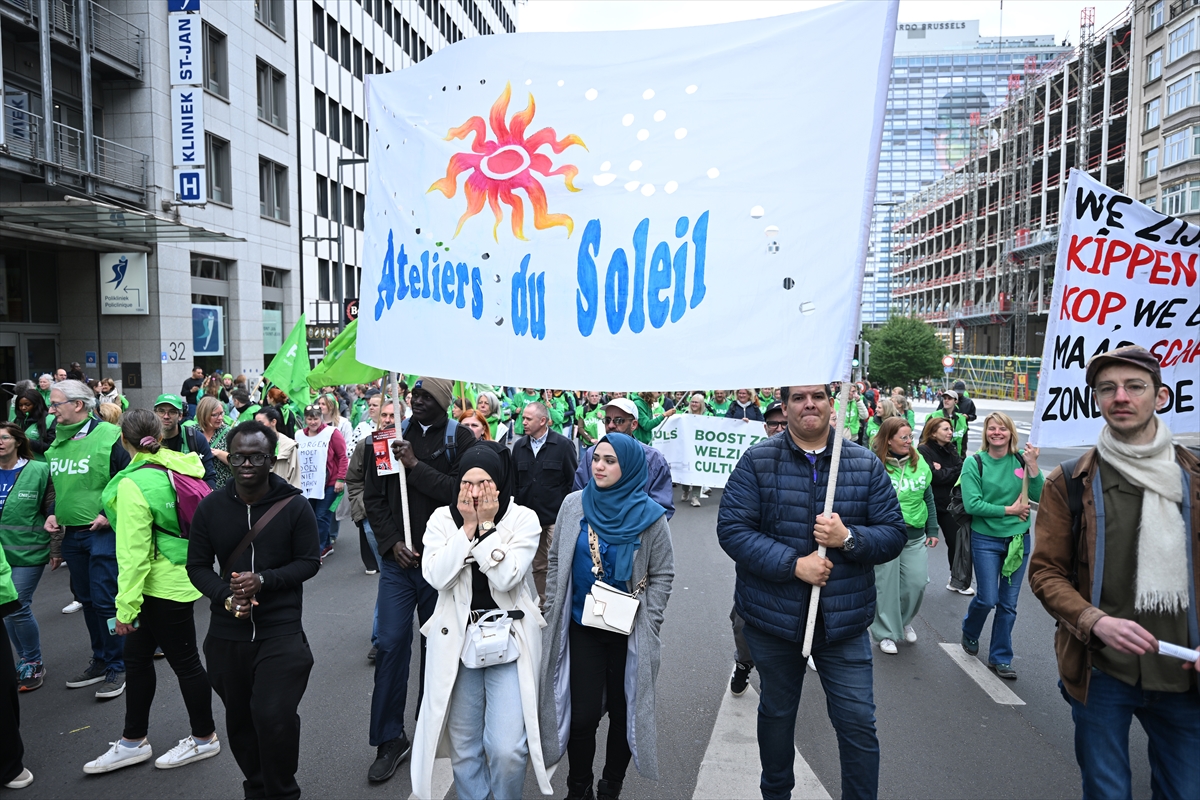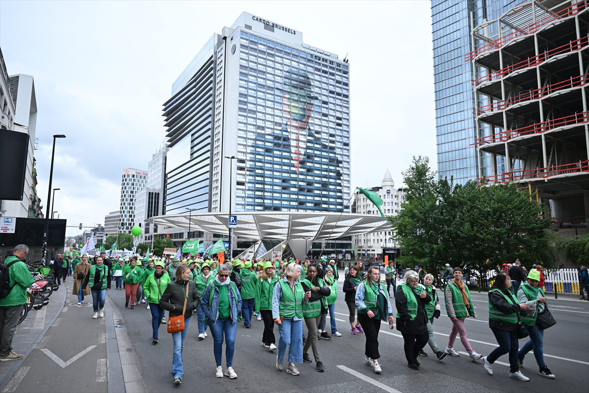 Ülkedeki çeşitli sendikaların çağrısıyla kar amacı gütmeyen sektörler olan sağlık, sivil toplum kuruluşları, kültür ve sanat gibi alanlarda çalışan yaklaşık 15 bin kişi, Brüksel'deki Kuzey Tren İstasyonu önünde toplandı.