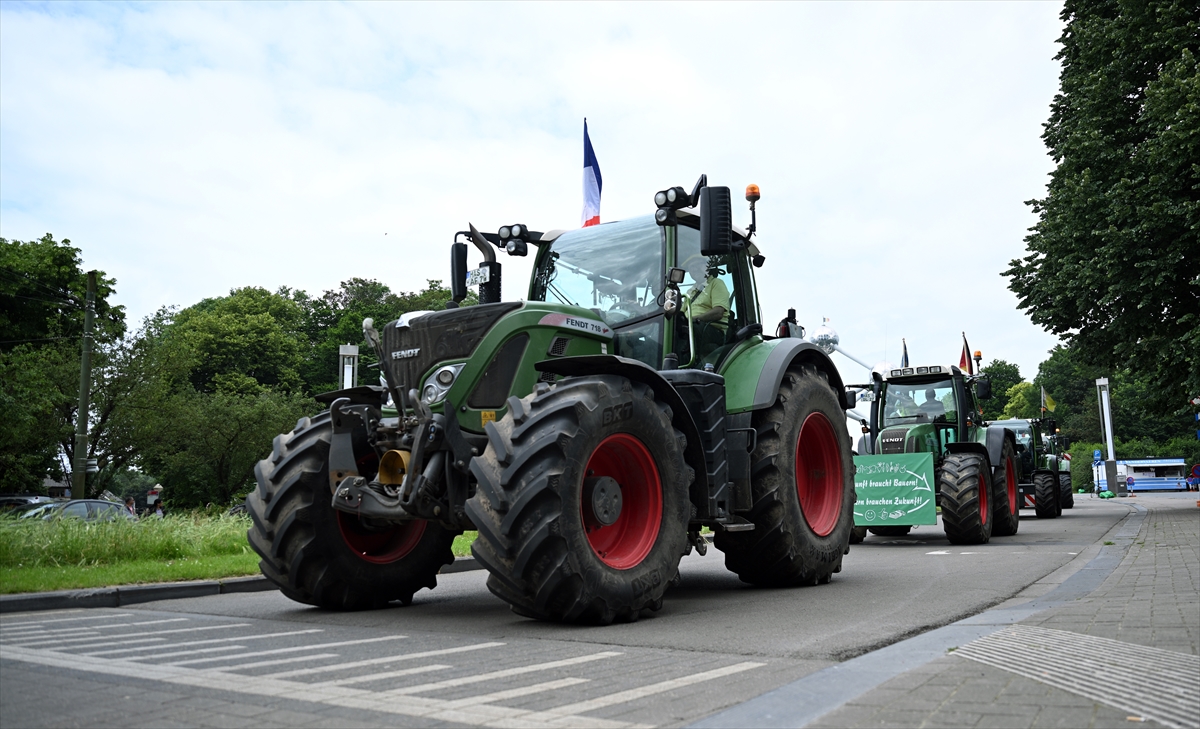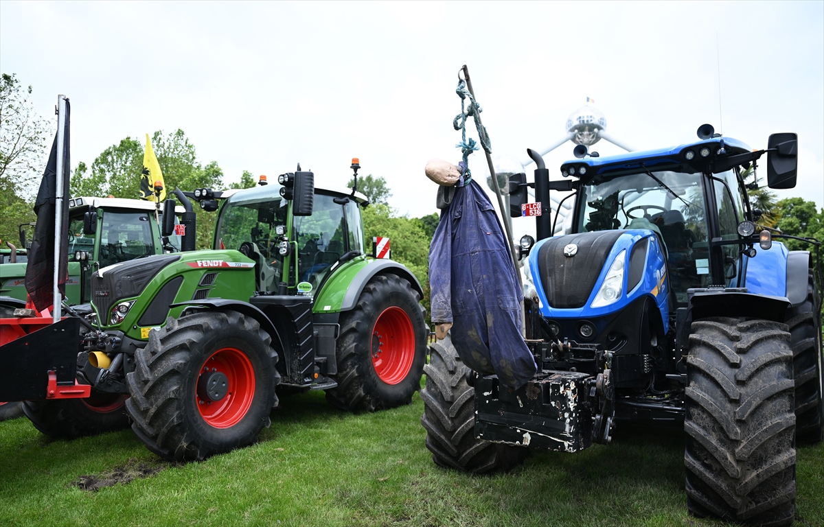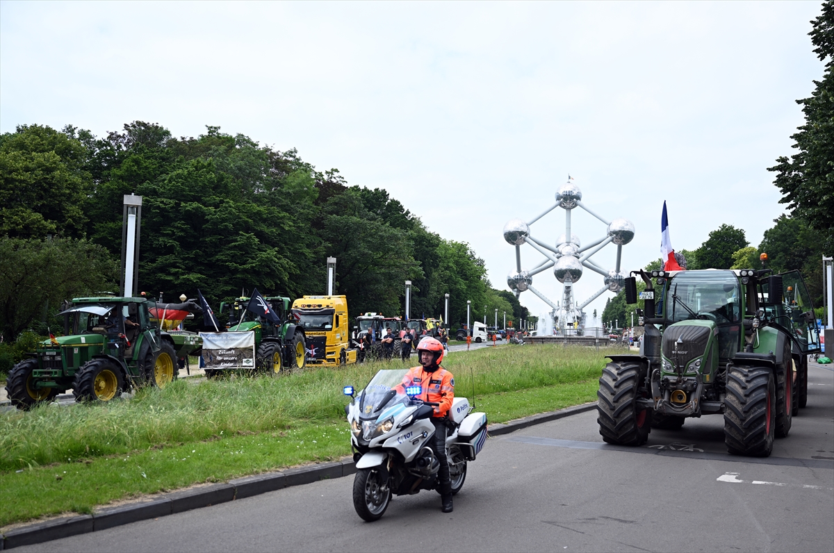Avrupa ülkelerindeki çeşitli çiftçi birliklerinin çağrısıyla çiftçiler, traktörleriyle Belçika'nın başkenti Brüksel'in sembolik anıtlarından Atomium'un önünde bir araya geldi.