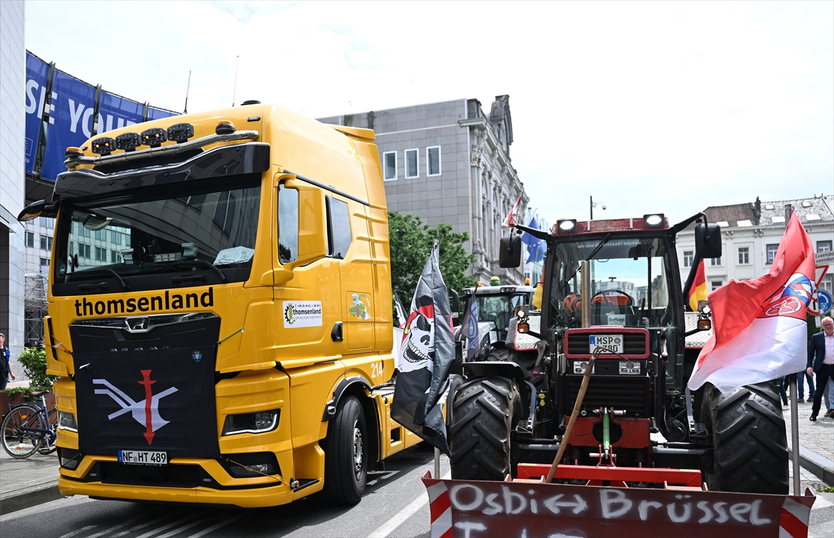 BRÜKSEL (AA) – Avrupa Birliği'nin (AB) çevre politikalarından rahatsız olan yüzlerce çiftçi Brüksel'de traktörleriyle protesto düzenledi.