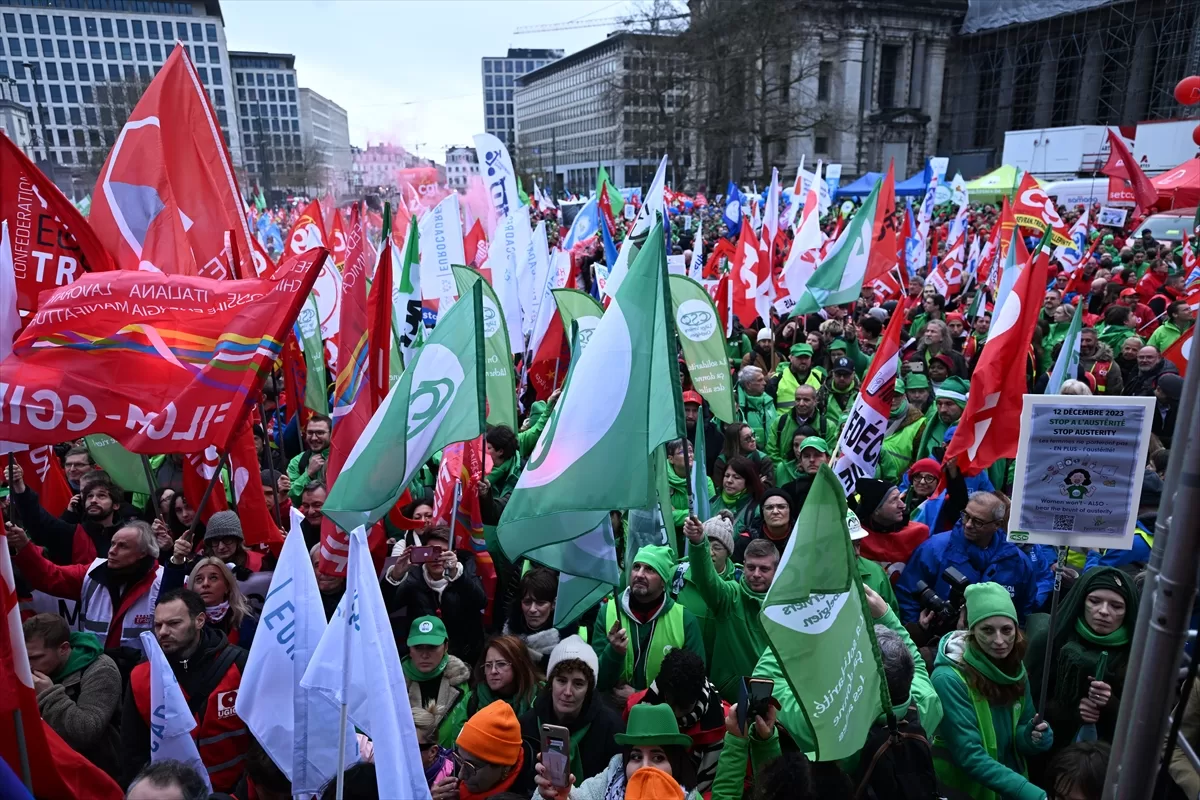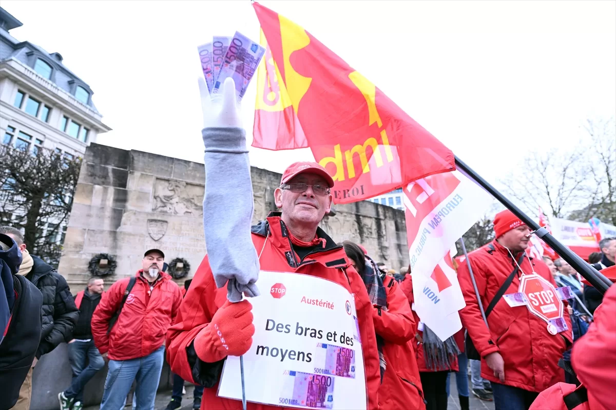 BRÜKSEL (AA) – Belçika'nın başkenti Brüksel'de, Avrupa Birliği (AB) ülkelerinin kamu harcamalarını azaltma politikalarına karşı gösteri düzenlendi.