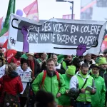 Avrupa Sendikalar Konfederasyonunun çağrısı üzerine çeşitli sendikalara üye çok sayıda kişi Brüksel Adalet Sarayı önünde toplandı.