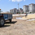 SİVAS (AA) – Buğdayda bu yıl 800 bin ton rekolte beklenen Sivas'ta depolarda yer kalmayınca kentteki bir mesire alanının yanındaki yaklaşık 40 dönümlük arazi Toprak Mahsulleri Ofisinin (TMO) kullanımına açıldı.