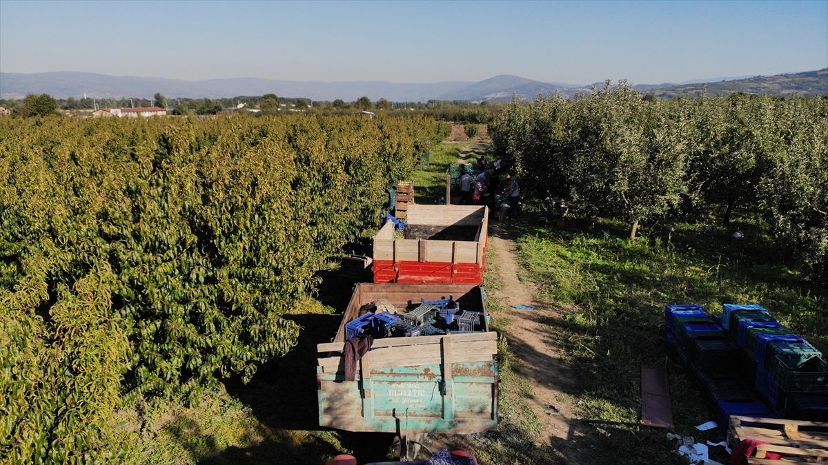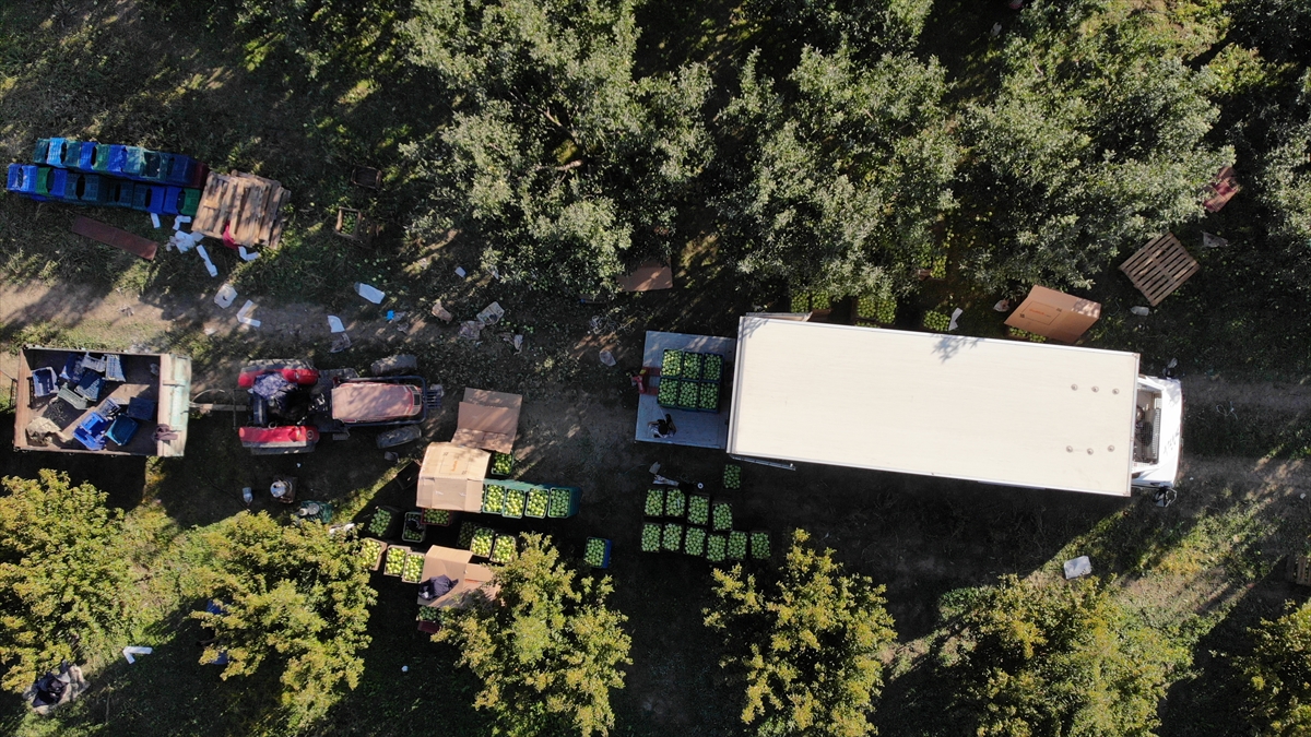 Ağaçlardan toplanarak kasalara yerleştirilen ürünlerin yarısından çoğu yurt dışına gönderilecek.