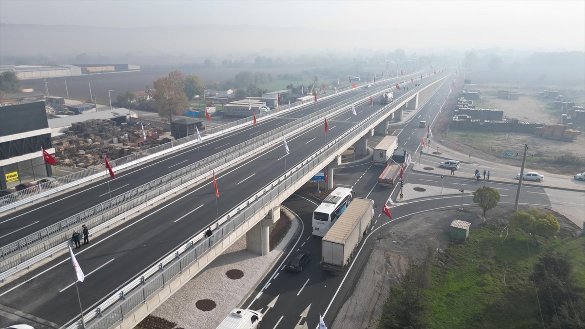 "İnegöl Giriş Kavşağı bu güzergah üzerinde, 152 metre uzunluğunda, 6 açıklıklı olarak, farklı seviyeli kavşak standardında inşa edilmiştir. Projenin toplam uzunluğu bağlantı yollarıyla birlikte 1,1 kilometreye ulaşmaktadır. Projeyle trafik akışı rahatlatıldı, yolun yatay ve düşey standardıyla birlikte ulaşım güvenliği artırıldı. Kavşağın hizmete sunulmasıyla Bursa Turanköy Kavşağı'ndan Eskişehir il sınırına kadar uzanan 106 kilometrelik hat içerisinde hiç sinyalize kavşak kalmamış, yüksek standartlı, hızlı, konforlu ve kesintisiz ulaşım tesis edilmiştir. Böylelikle zamandan 1 milyar 200 milyon lira, akaryakıttan 50 milyon lira olmak üzere yıllık toplam 1 milyar 250 milyon lira tasarruf sağlayacağız, karbon salınımını yıllık 308 ton azaltacağız."