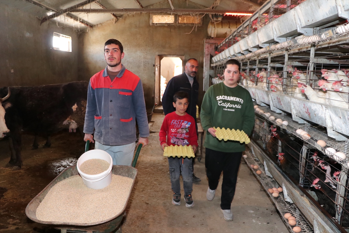 Tavuk sayısını 7 bine çıkaran Ceylan, bakım, besleme, etiketleme ve toplama işlerinde kendisine destek olan çocuklarıyla günlük 5 bin yumurta üretiyor.