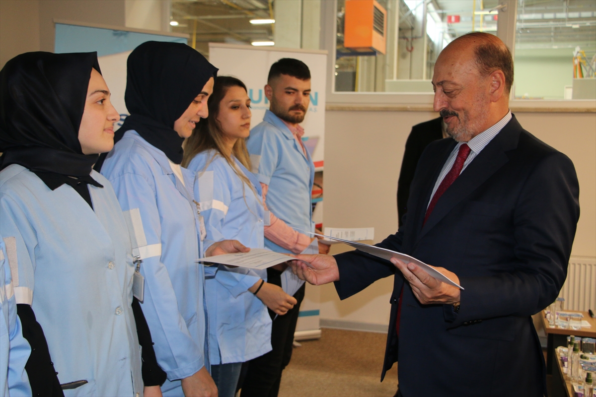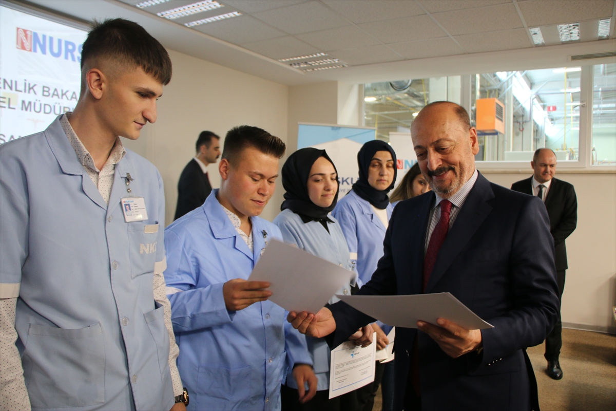 Konuşmaların ardından Nursan Yönetim Kurulu Başkanı Kağan Yamakoğlu ve Bakan Bilgin, işbaşı eğitim programını tamamlayan işçilere belgelerini verdi.