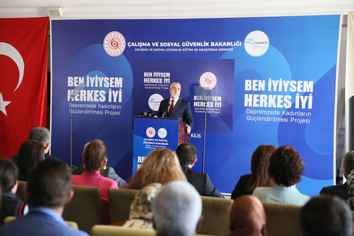 Bakan Işıkhan, bir dizi ziyaret için geldiği Kilis'teki bir otelde düzenlenen "Ben İyiysem, Herkes İyi Depremzede Kadınların Güçlendirilmesi Projesi" seminerine katıldı.