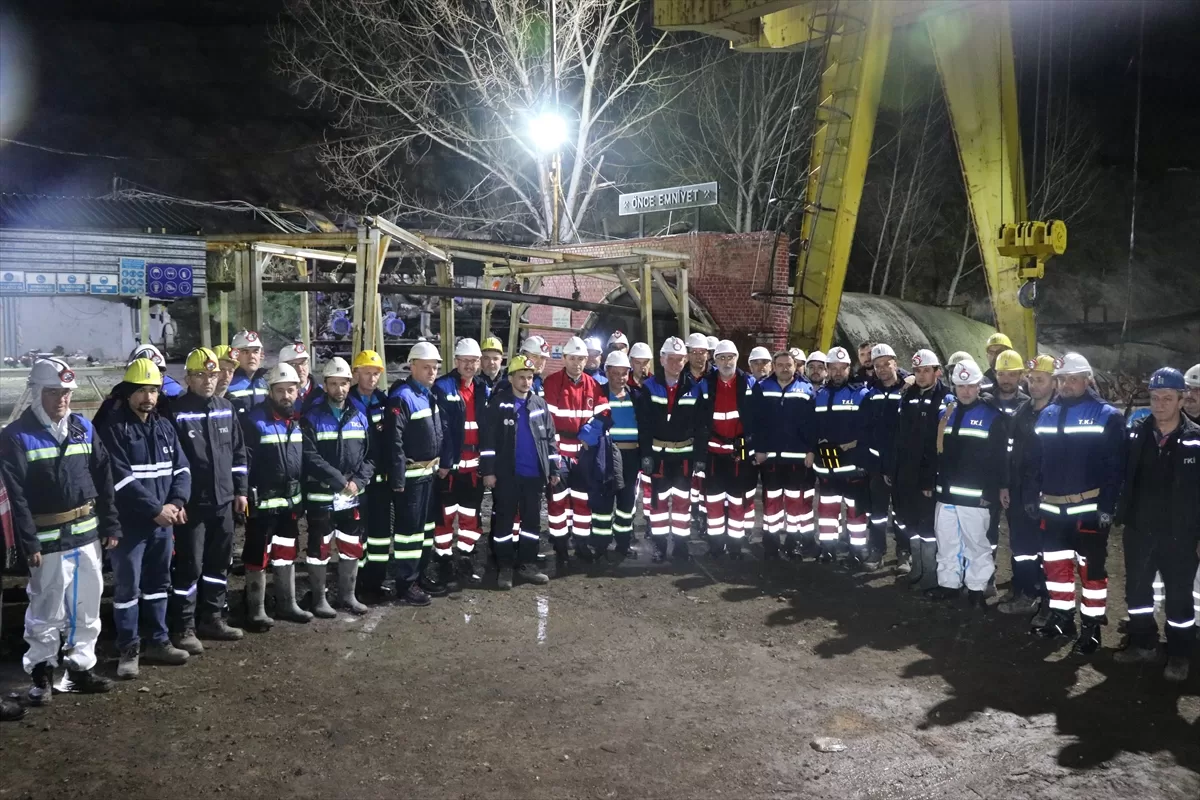 Işıkhan, Tunçbilek beldesindeki Türkiye Kömür İşletmelerine ait Garp Linyitleri İşletmesi Ömerler Yeraltı Mekanize Maden Ocağı'nda çalışan işçilerle yerin 100 metre altında bir araya geldi.
