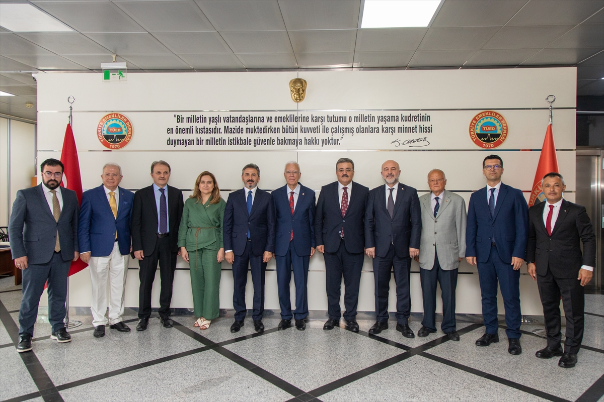 Aydın, Çalışma ve Sosyal Güvenlik Bakan Yardımcıları Adnan Ertem, Faruk Özçelik, Sosyal Güvenlik Kurumu (SGK) Başkanı Raci Kaya ve SGK birim amirleri ile "2024 Emekliler Yılı" kapsamında Türkiye Emekliler Derneği (TÜED) Genel Merkezi'ni ziyaret etti.