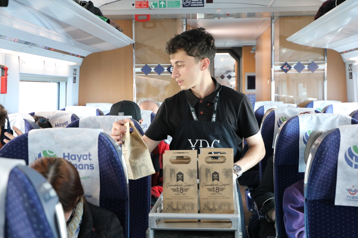 ANKARA (AA) – 18 Mart Şehitleri Anma ve Çanakkale Deniz Zaferi'nin 110. yıl dönümünde, trenlerde Çanakkale Savaşı'nda Mehmetçiğin azığı olan hoşaf ve ekmek dağıtımı yapıldı.