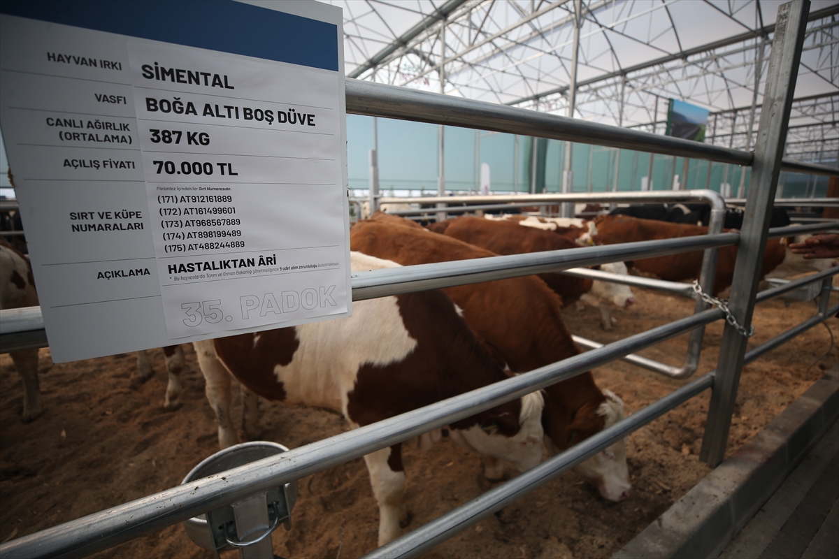 Burada oluşturulan alanda, işletme tarafından "hastalıktan ari" sertifikalı çeşitli özellikteki 190 büyükbaş satışa sunuldu.
