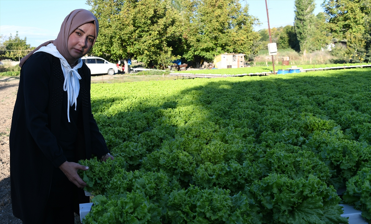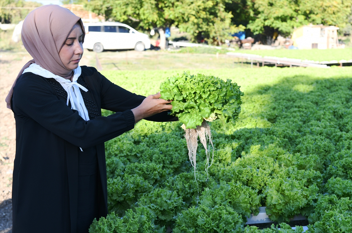 ÇANAKKALE (AA) – Çanakkale'nin Lapseki ilçesinde üretici Hanife Kartal, topraksız sulu tarım modeliyle marul yetiştiriciliği yapıyor.