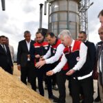 Konuşmanın ardından Vali Mustafa Fırat Taşolar, biçerdöverle tarlaya girerek çeltik hasadına katıldı.