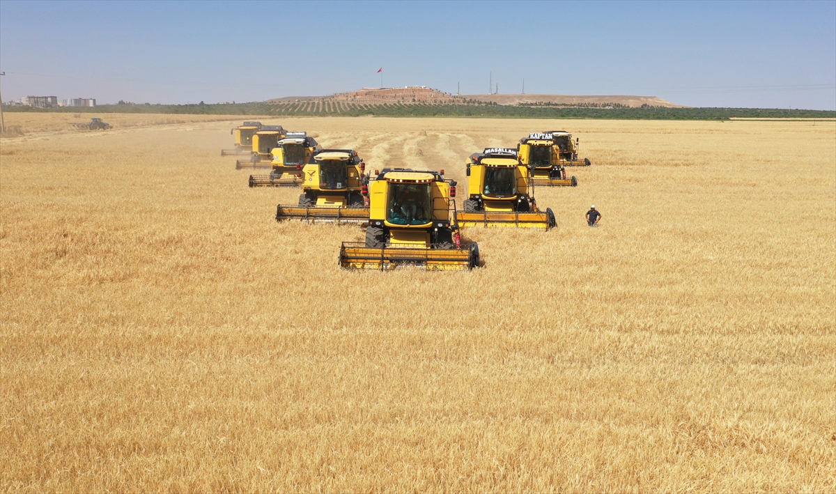 ŞANLIURFA (AA) – Tarım ve Orman Bakanlığı Tarım İşletmeleri Genel Müdürlüğüne (TİGEM) bağlı Ceylanpınar Tarım İşletmesinde hububat hasadı sürüyor.