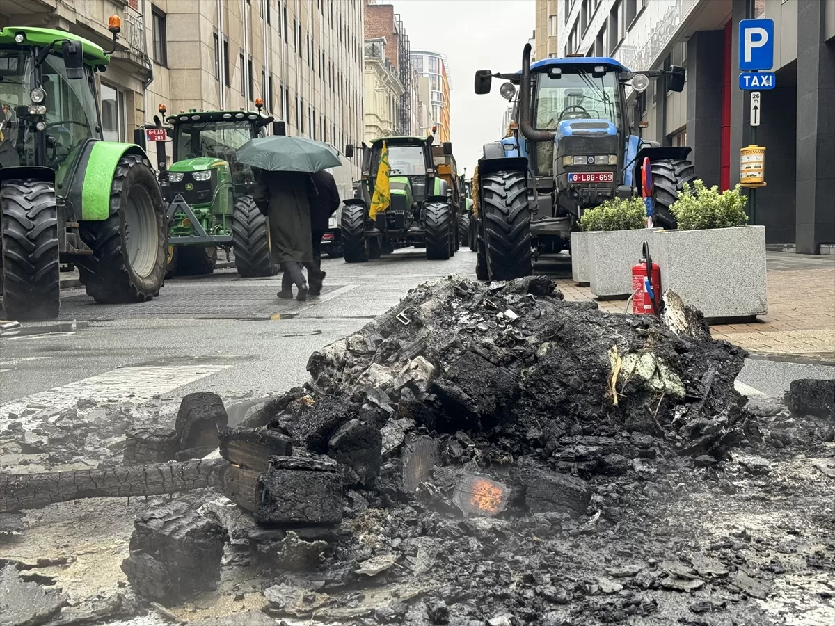 Çevreye torpil fırlatan ve çeşitli sloganlar atan çiftçilerin tutuşturduğu lastik ve saman balyalarına Belçika polisi TOMA'lar ile müdahale etti.
