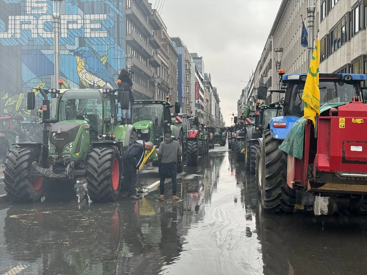 BRÜKSEL (AA) – Çiftçiler, Avrupa Birliği (AB) kurumları önünde yüksek maliyetler, yetersiz desteklemeler, ucuz ithal ürünler ve katı çevre politikaları nedeniyle protesto düzenledi.