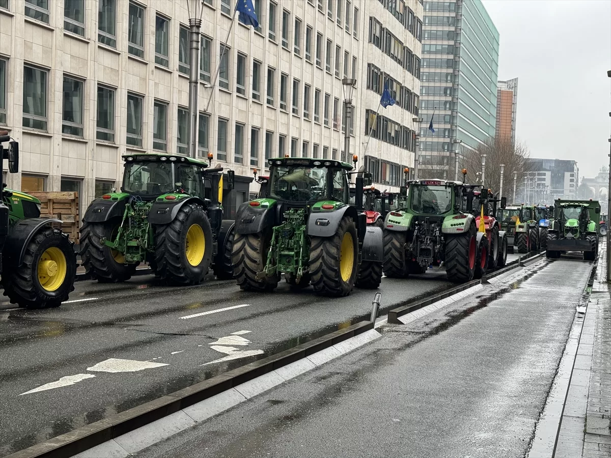 Belçika'daki çeşitli çiftçi derneklerinin çağrısıyla yüzlerce çiftçi, Brüksel'deki AB Komisyonu ve AB Konseyi binası yakınında toplandı.