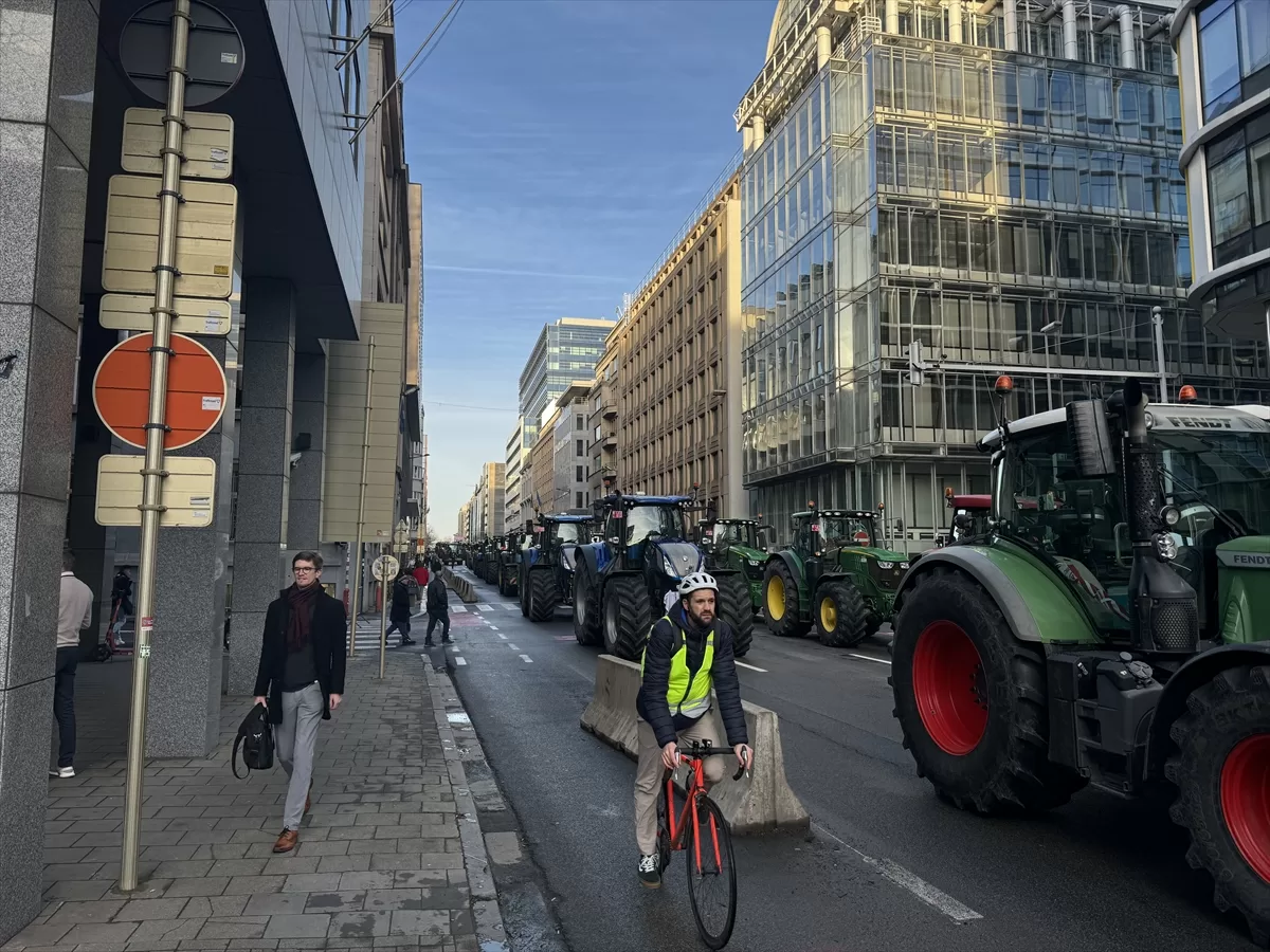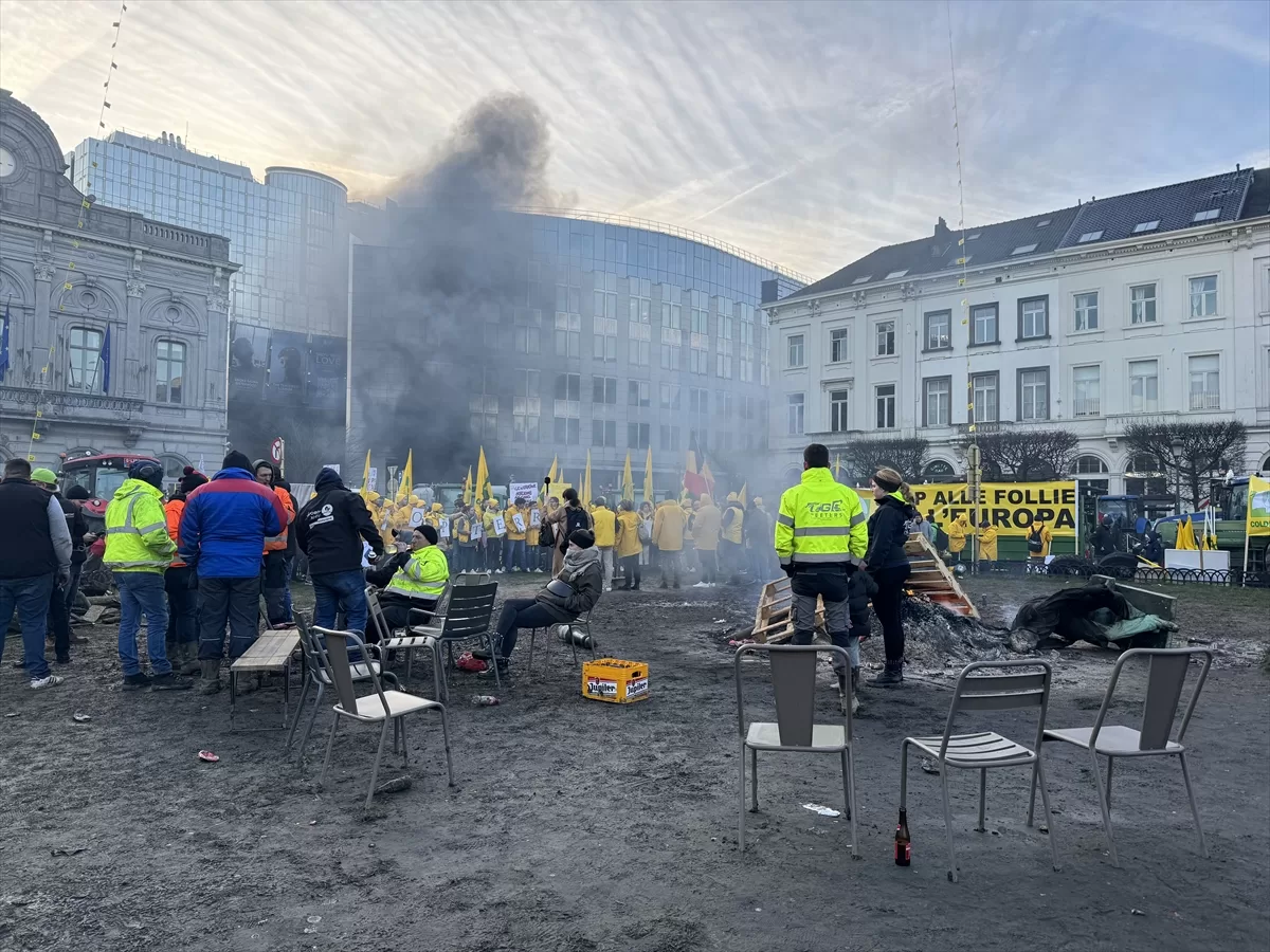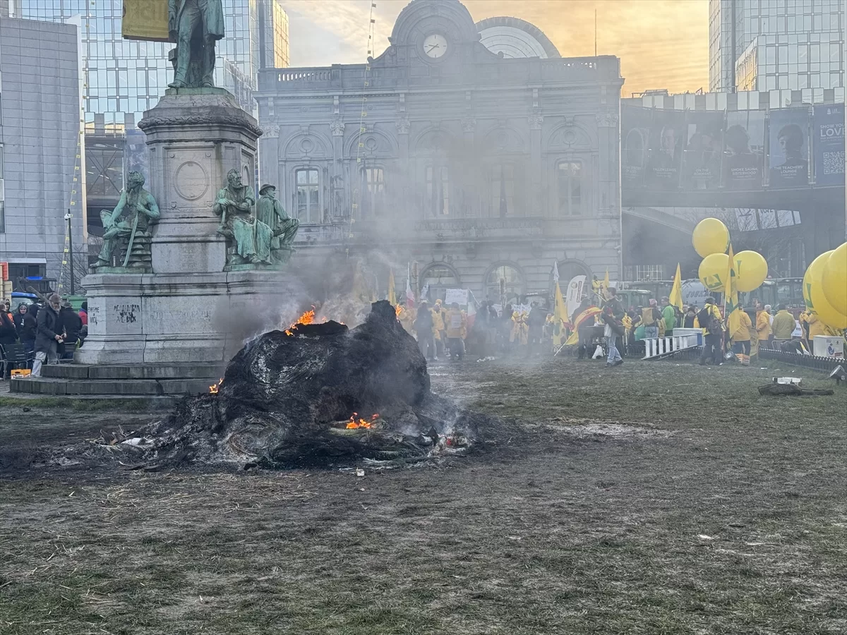 BRÜKSEL (AA) – Brüksel'de çiftçiler, Avrupa Parlamentosu'nun (AP) önünde, artan maliyetler, Avrupa Birliği'nin (AB) çevre politikaları ve ucuz tarım ürünü ithalatını protesto etti.