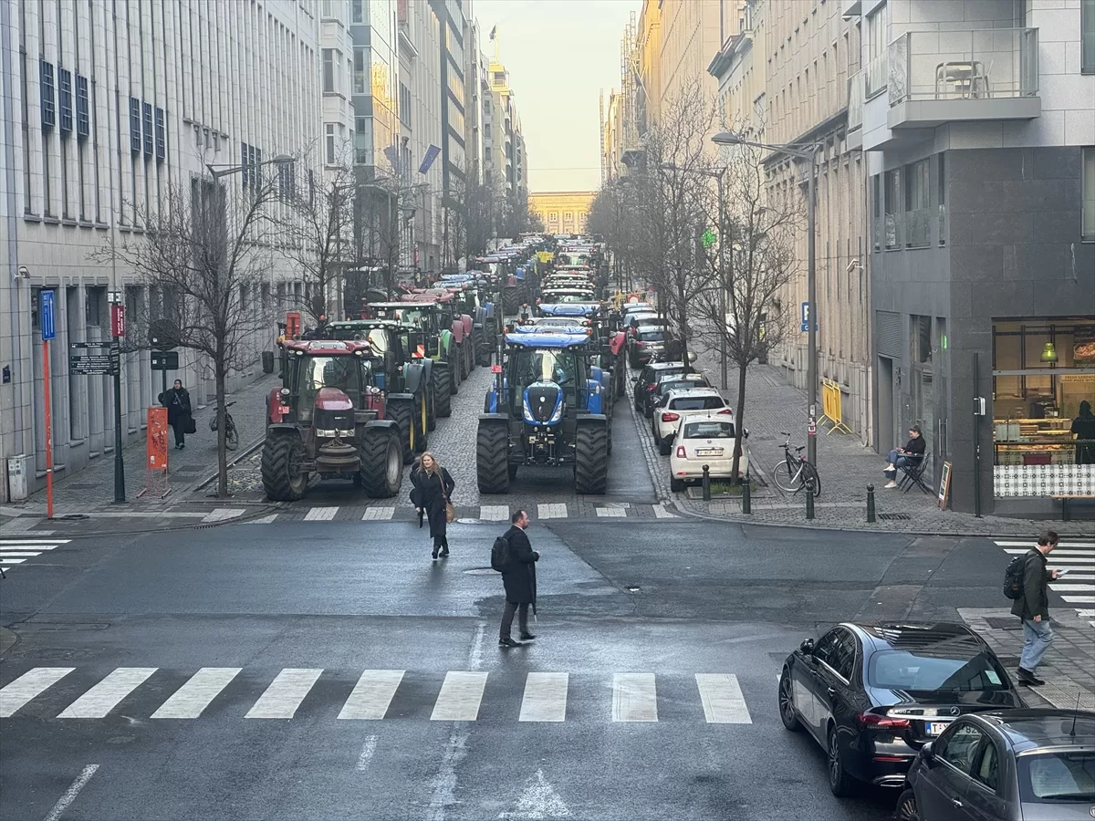 Çiftçiler, AB Liderler Zirvesi'nin yapıldığı bölgenin çevresinde trafiği traktörleriyle kilitledi.
