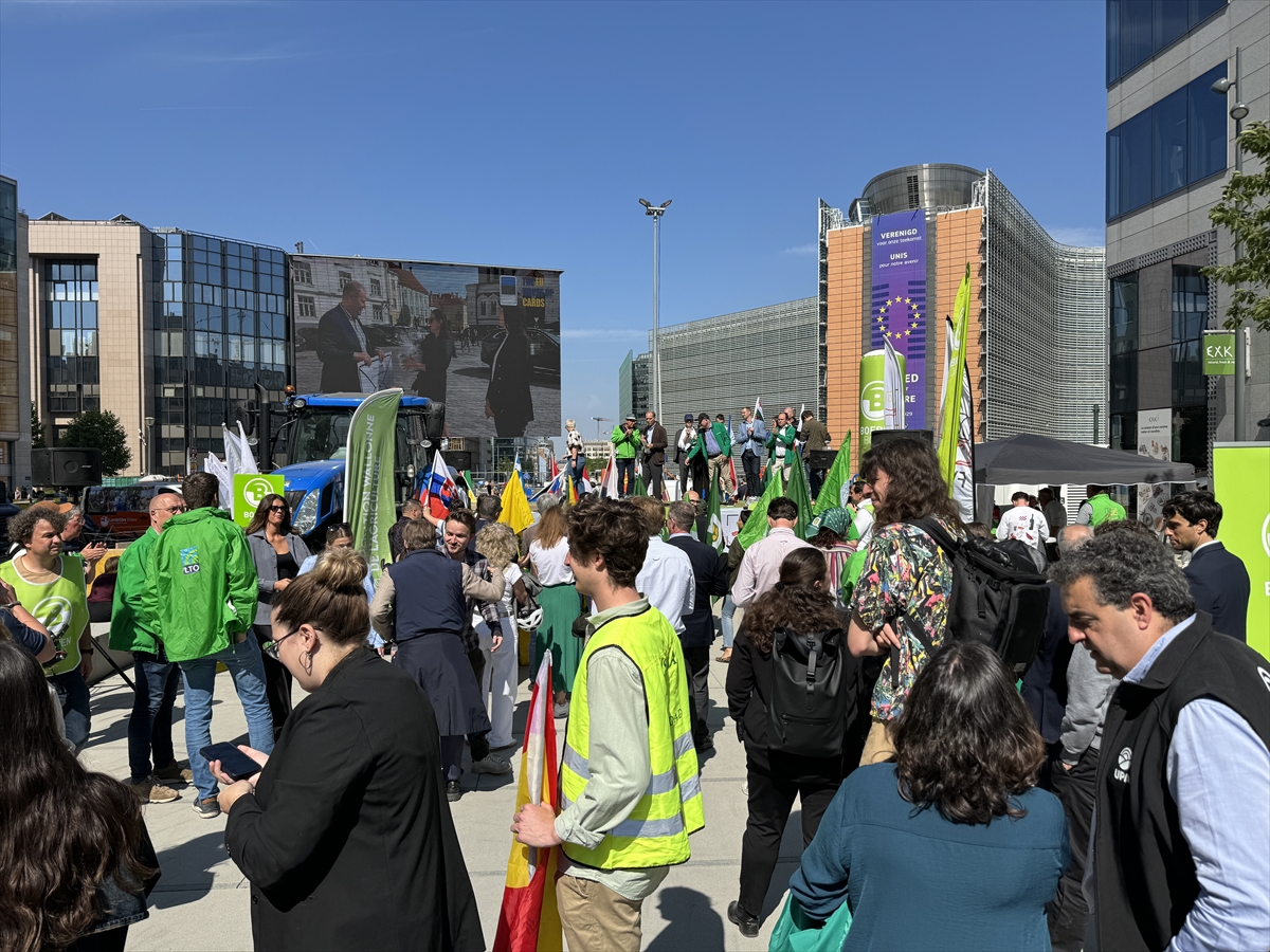 Protesto, AB Komisyonu Başkanı Ursula von der Leyen'in açılışını yaptığı 2025 yılı AB Bütçe Konferansı sırasında gerçekleştirildi.
