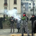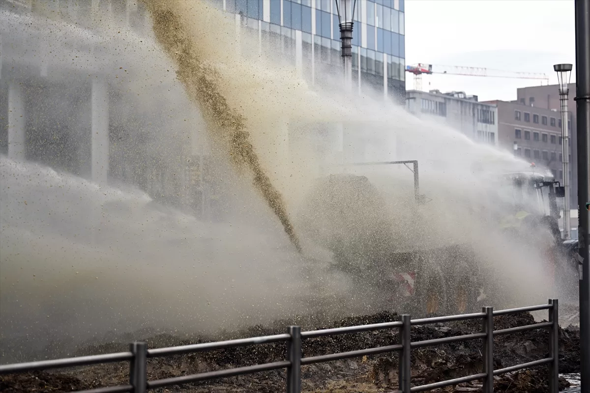 Protestocular, Maalbeek metro istasyonu girişine döktükleri saman balyalarını ateşe verdi. Polis göstericilerin üzerine gaz ve tazyikli su sıkarak müdahale etti.