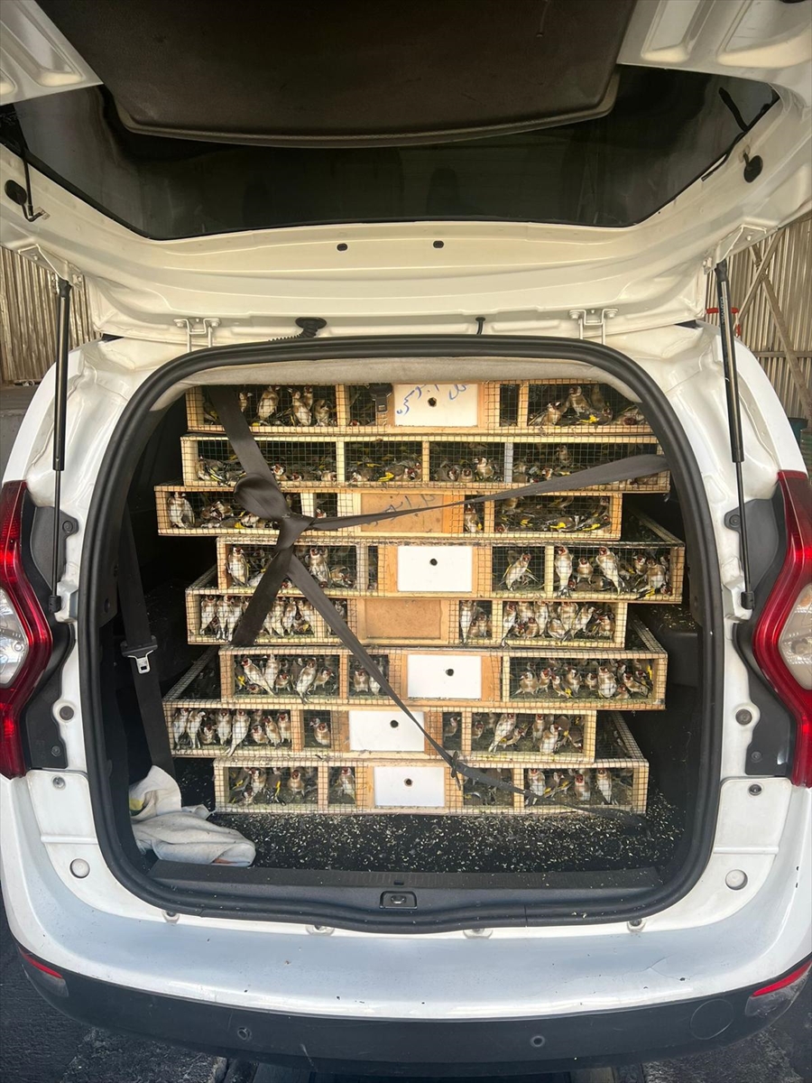 Çobanbey Gümrük Muhafaza Kaçakçılık ve İstihbarat Bölge Amirliği ekiplerince detaylı arama yapılan aracın bagajında 13 kafesli sandık içerisinde 6 bin 500 saka kuşu belirlendi.