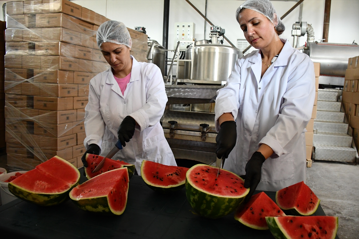Tesiste, karpuzun suyu posasından ayrılıp sıkıldıktan sonra süzeklerden geçirilerek 7-10 saat arasında kazanlarda kaynatılıyor. Kadınlar tarafından işlenen günlük 200 ton karpuz, pekmeze dönüştürülüyor.