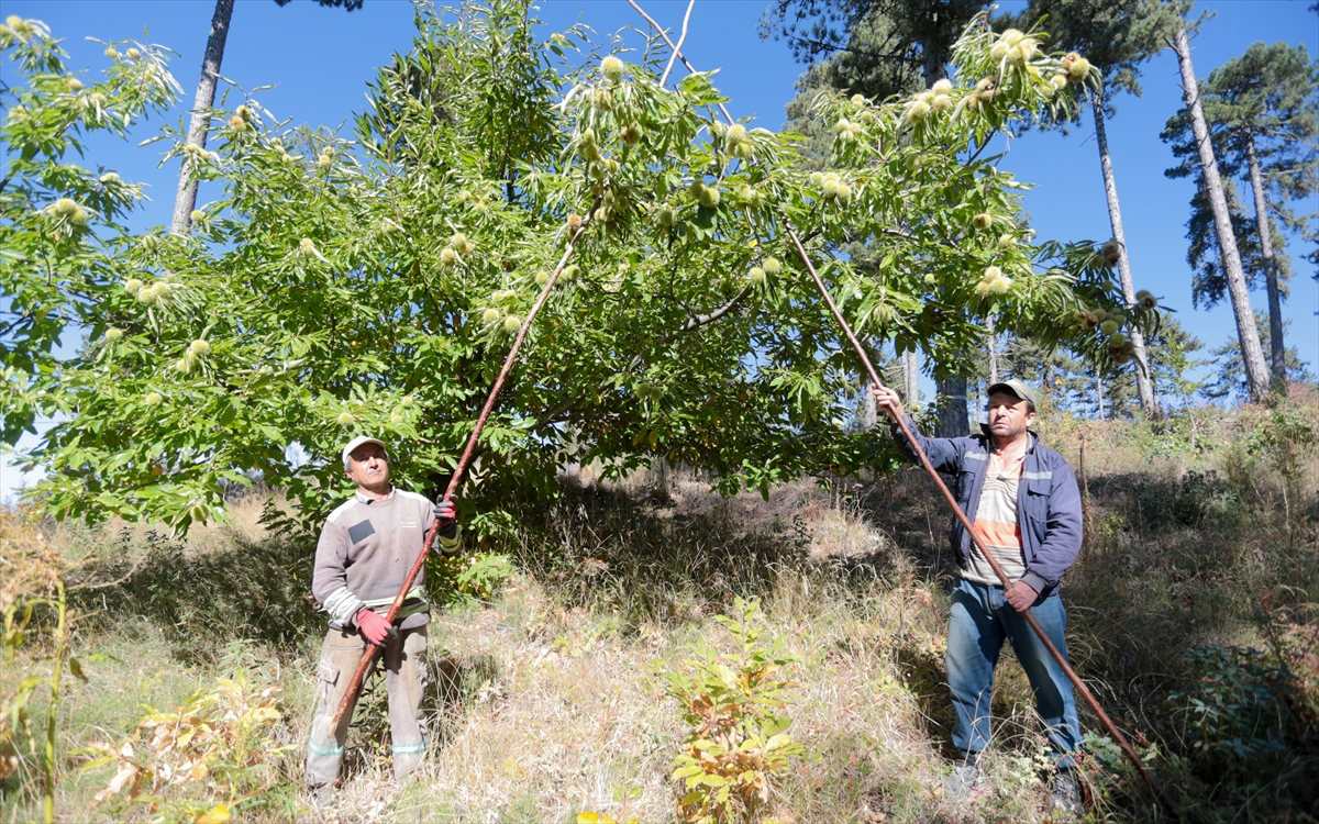 Bölgedeki 150 bin civarındaki kestane ağacından, meyve veren yaklaşık 80 bin ağaçta hasat yapılıyor.