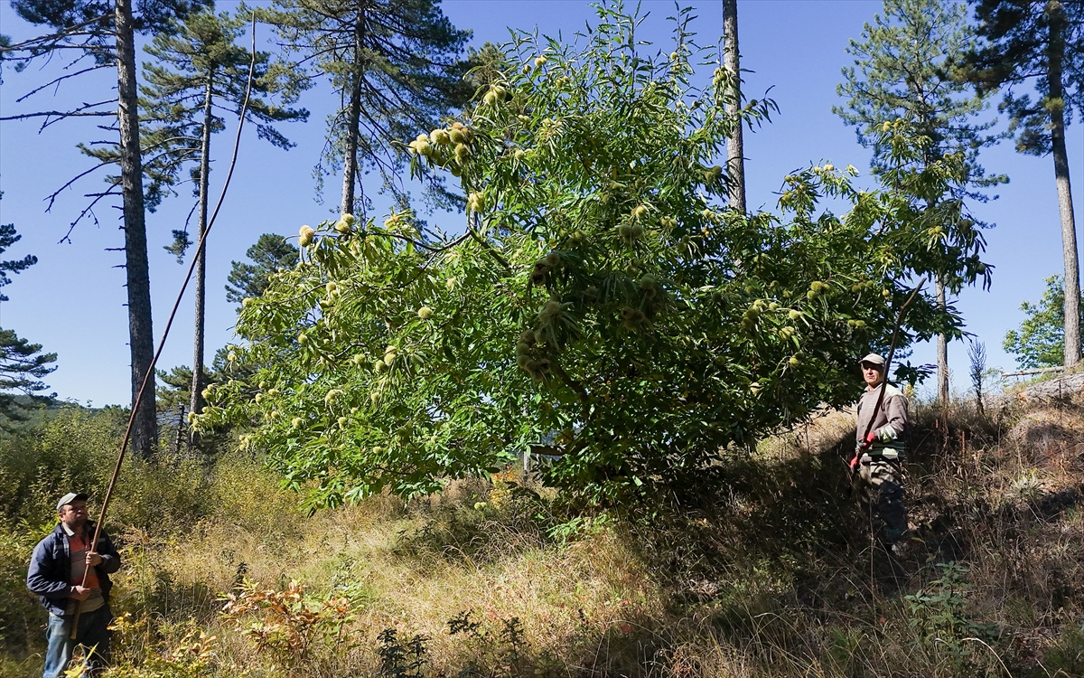 "Kestanelerimiz olgunlaşmış. Bundan dolayı ormana kestaneleri silkelemeye ve toplamaya geldik. Sırıklarla ağaçları silkeledikten sonra çuvallara dolduruyoruz. Daha sonra bu kestaneleri daha lezzetli olmaları için birkaç ay bekletiyoruz. Yağış olmadığından dolayı önceki yıllara göre bu yıl hasat düşük. Bu sezon kestanenin kilogramı yaklaşık 150-200 lira arasında satılır diye tahmin ediyorum. Bu bölgede yetişen kestanelerin kokusu, aroması ve lezzeti çok güzel."
