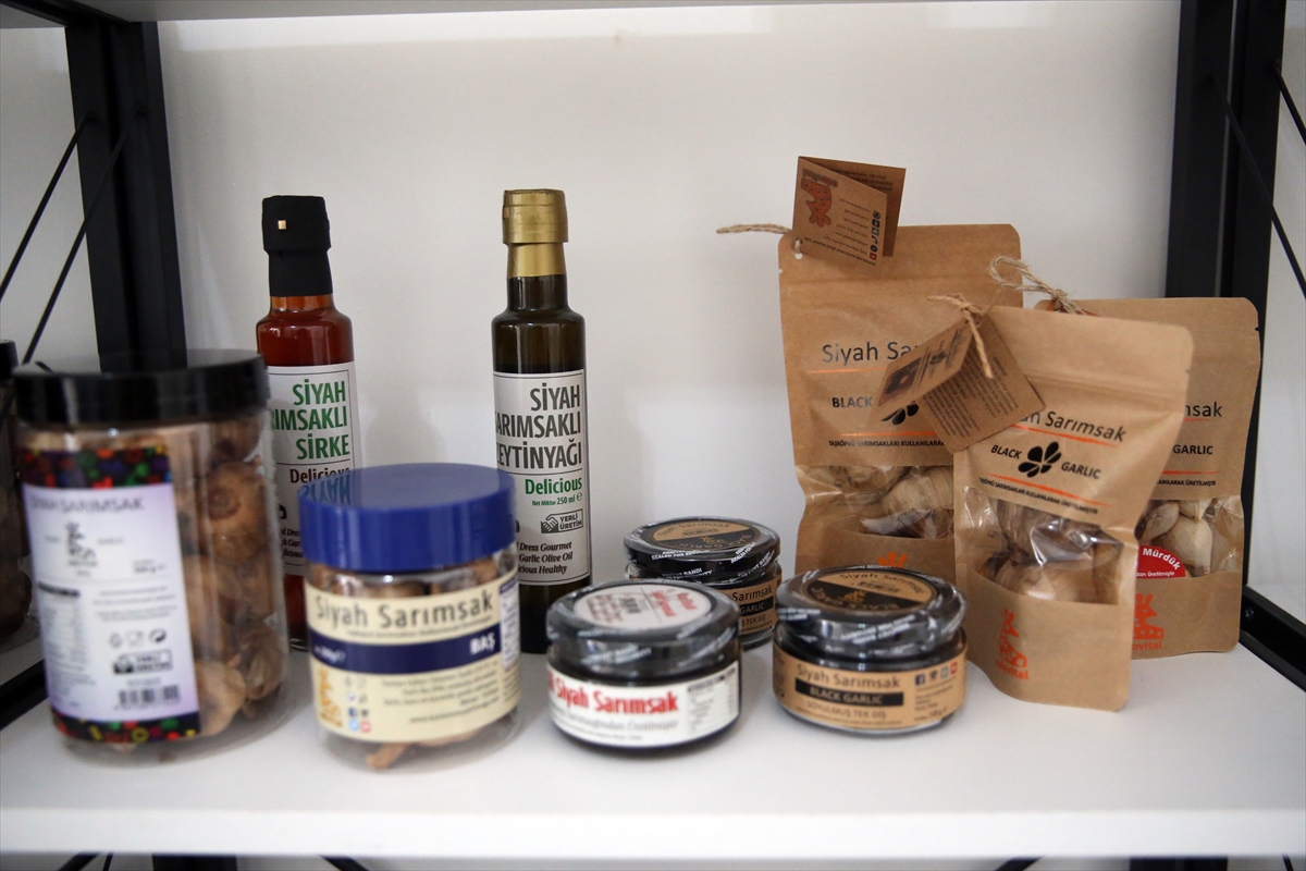 Zamanla ürün çeşitliliğini artırdıklarını dile getiren Cebeci, "İlk başta sadece baş olarak ürettiğimiz siyah sarımsağı, şimdilerde çeşitlendirdik. Bunun püresini yaptık, burada yetişen yine tek diş 'mürdük' diye özel bir sarımsak var. Onu siyahlaştırdık, onun siyah mürdüğünü üretmeyi başardık. Siyah sarımsaktan sirke gibi çok farklı ürünler yaptık. Ondan fazla değişik siyah sarımsak ürünümüz var. Bu ürünleri tesisimizde fermente ettikten sonra ambalajlıyoruz ve zincir marketlere veriyoruz, restoranlara veriyoruz." diye konuştu.