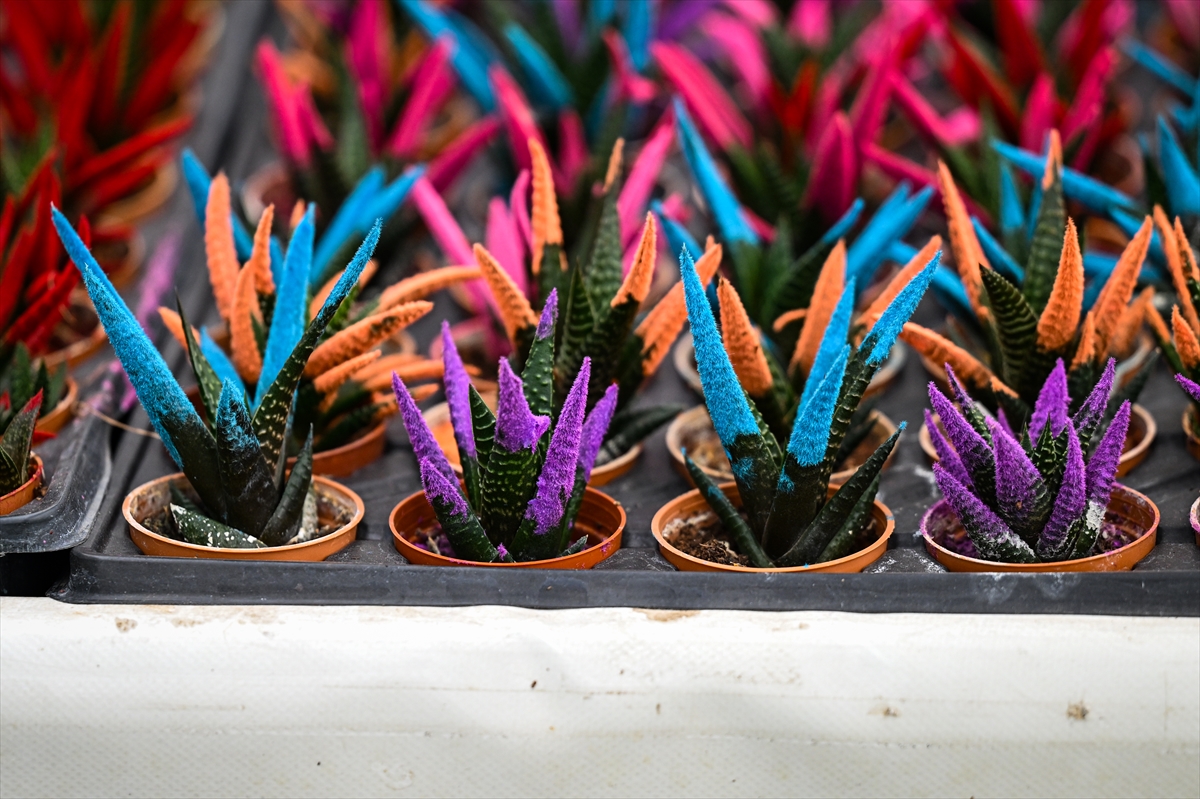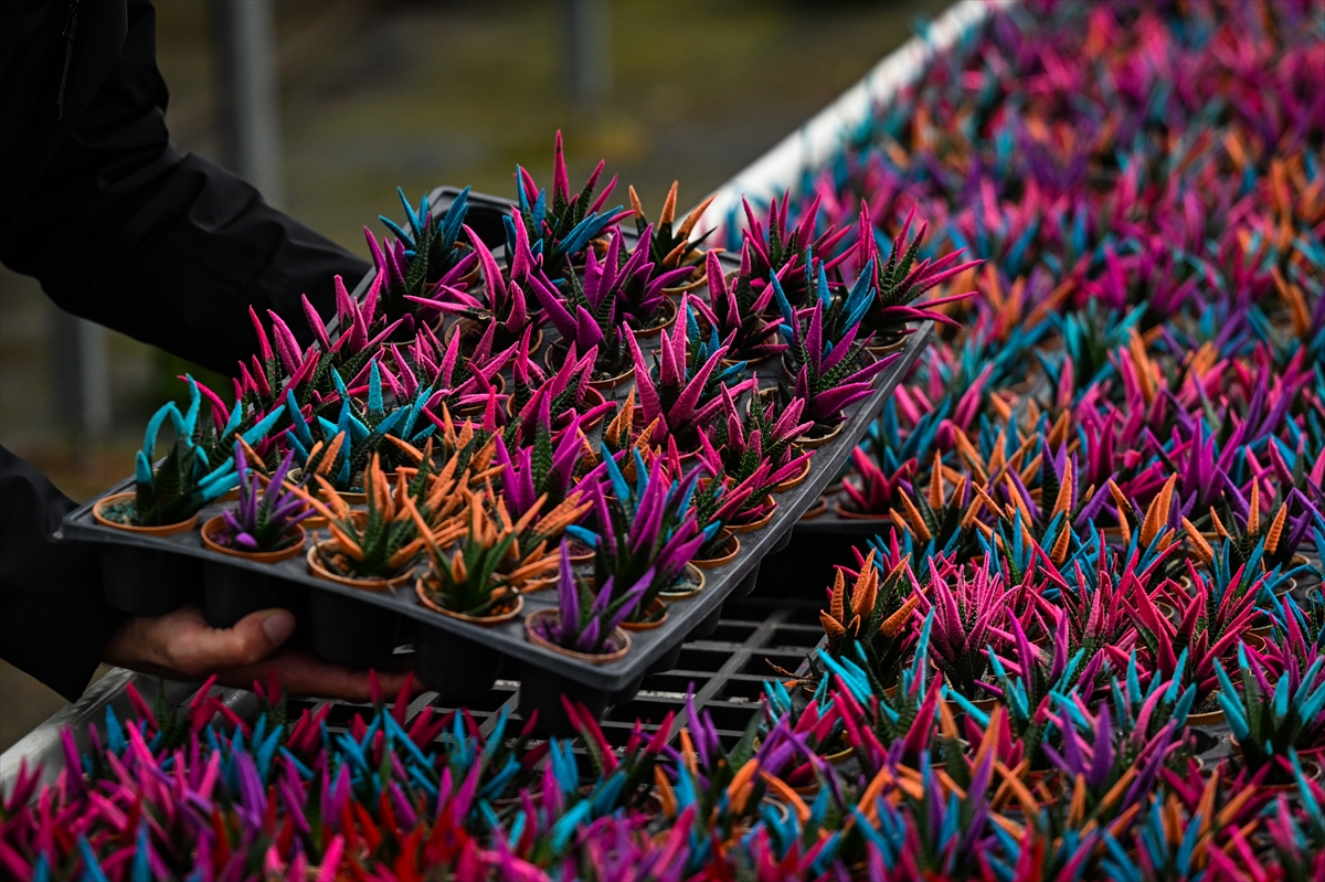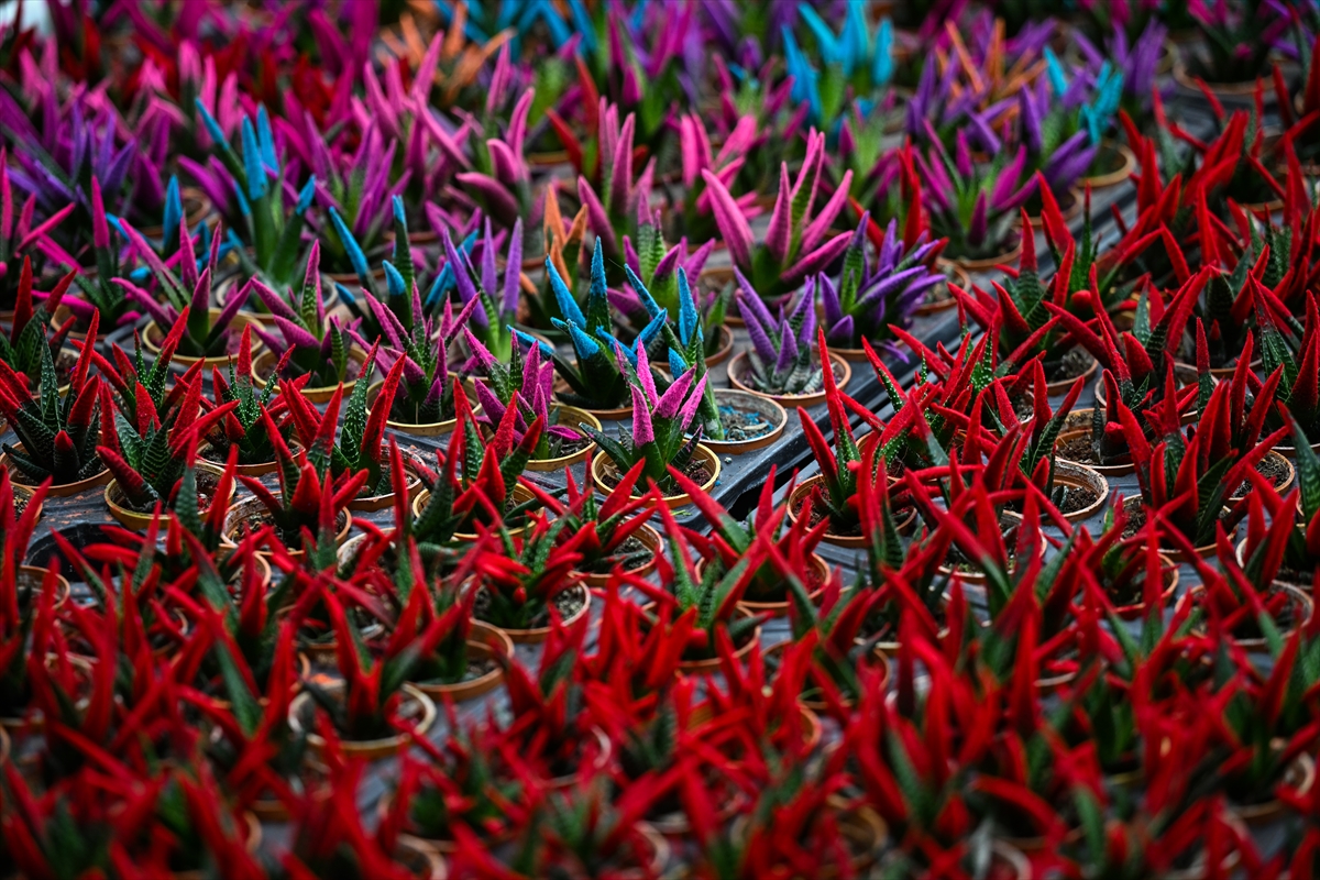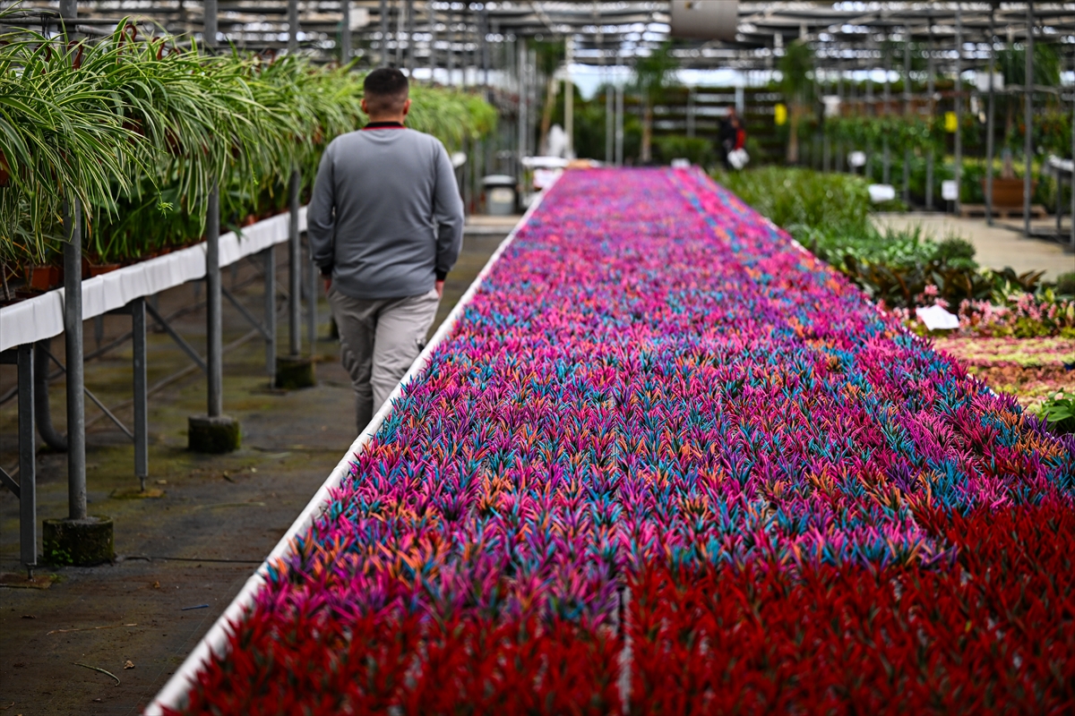 Bazıları 12 ay, bazıları ise 3 ayda yetiştirilen rengarenk çiçek ve bitkiler, özel günlerinde sevgililere ulaştırılmak için hazırlanıyor.