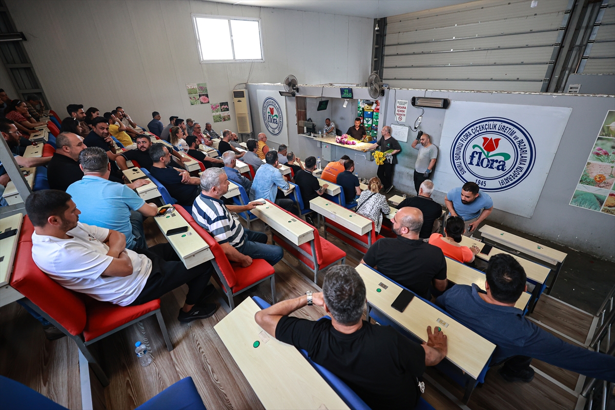 Ülke genelinde 18 şubesi bulunan Flora Çiçekçilik Üretim ve Pazarlama Kooperatifinin Toroslar ilçesindeki şubesinde, satışlar açık artırma usulü yapılıyor.